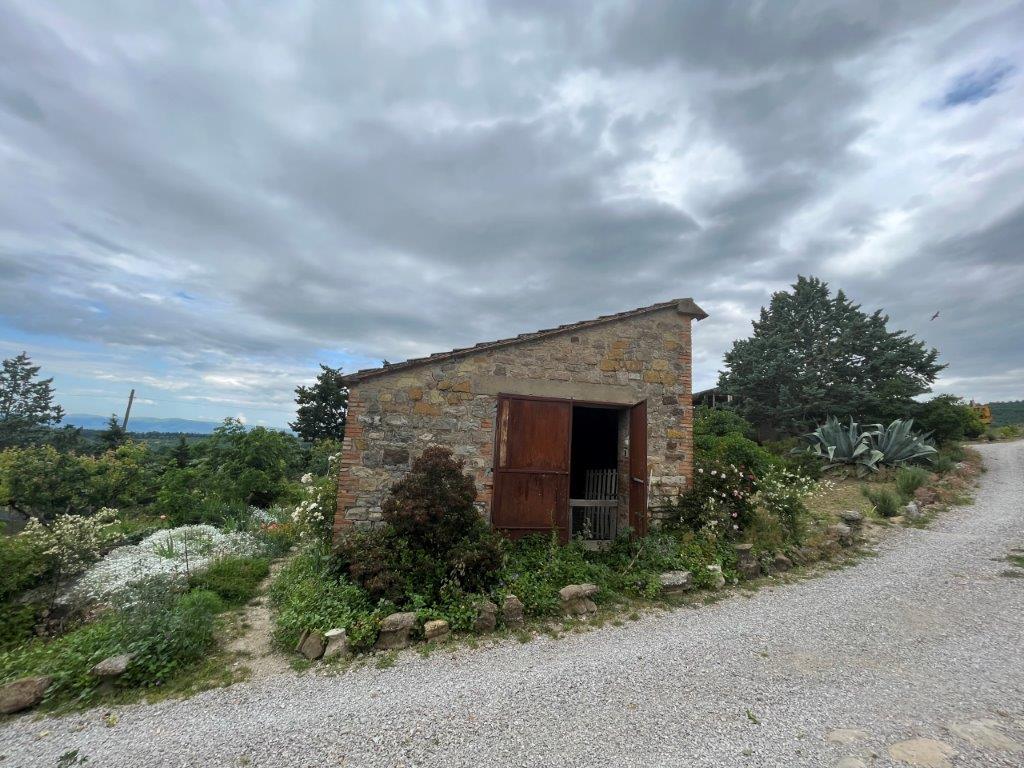 Outside, large land divided between arable land, olive grove and wood, as well as two outbuildings.