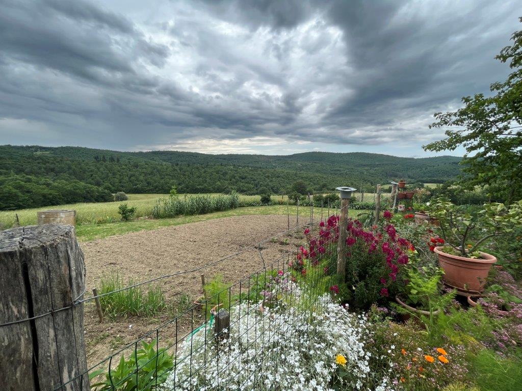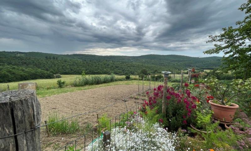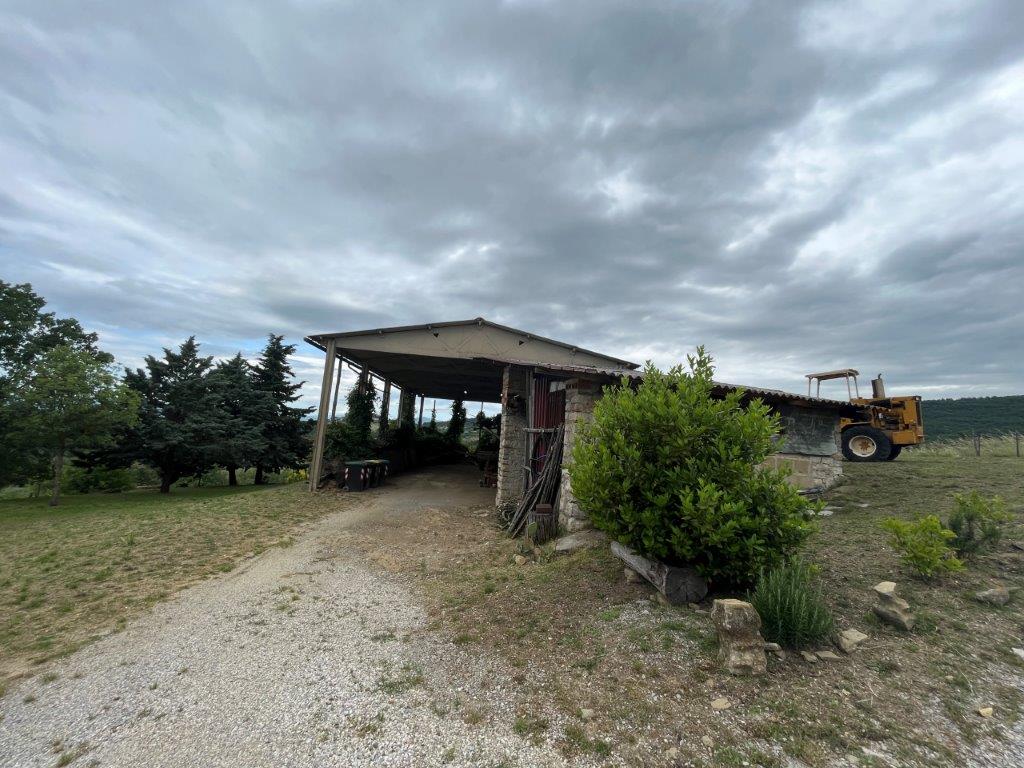 Near Montegabbione, in a hily and panoramic position semi-detached stone farmhouse of 300 sq m with 38 hectares of land.