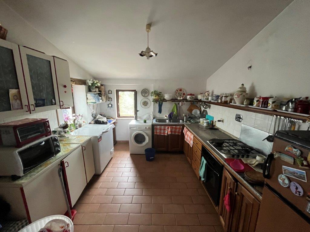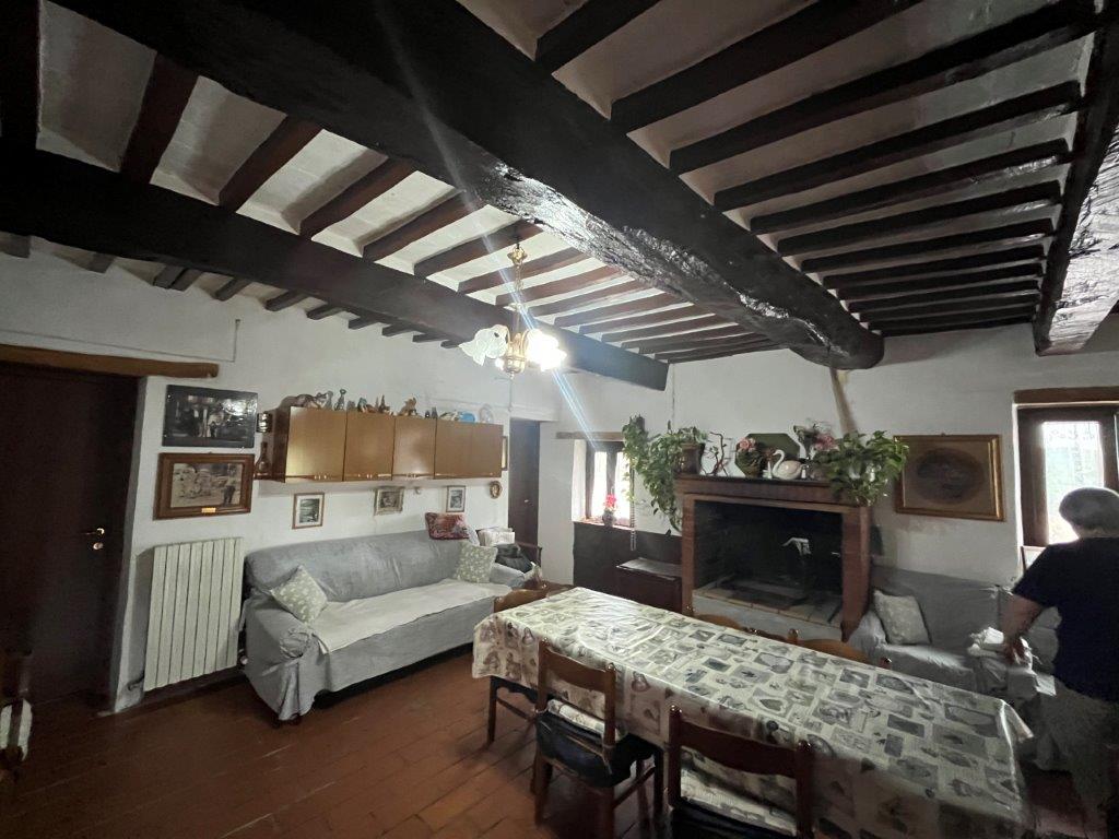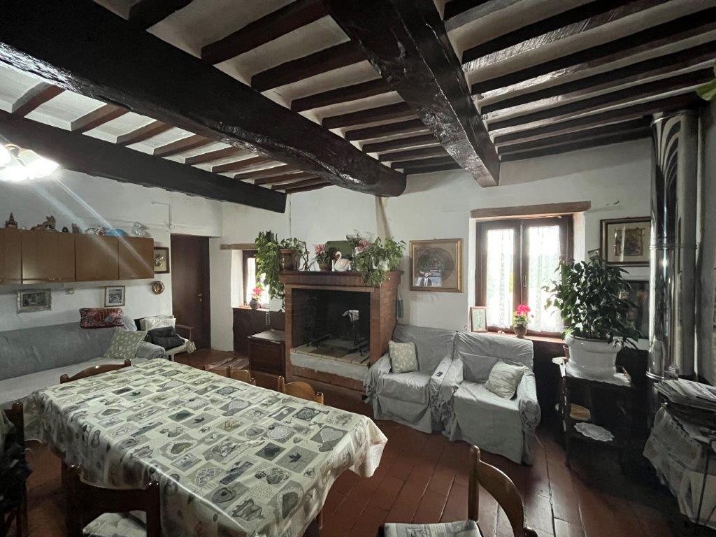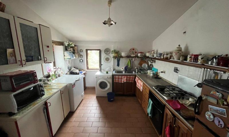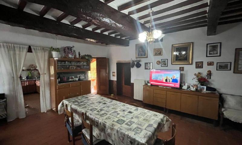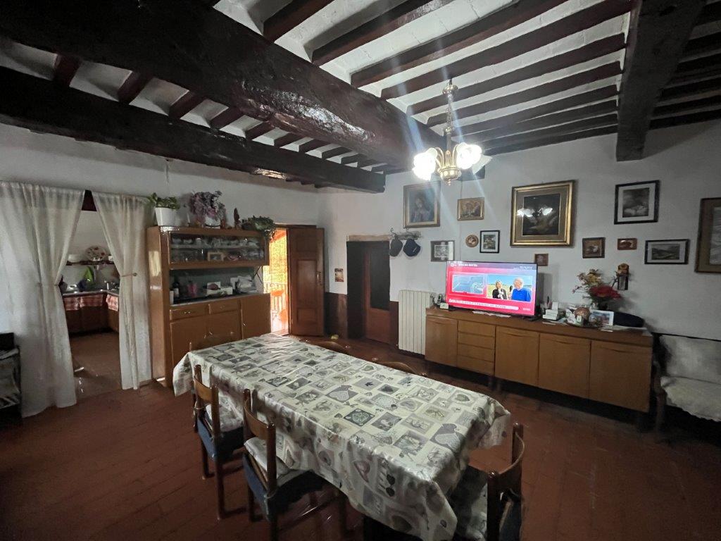 - On the first floor, reached by an external staircase, the living area opens into a living room with fireplace, on this level there are also an eat-in kitchen, a dining room, two double bedrooms and a bathroom.