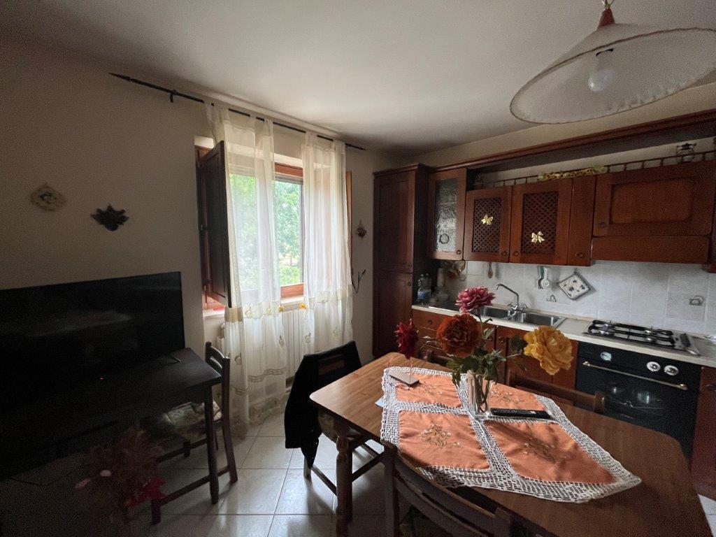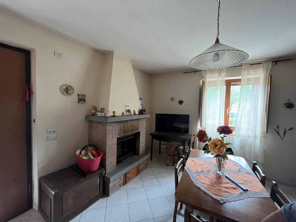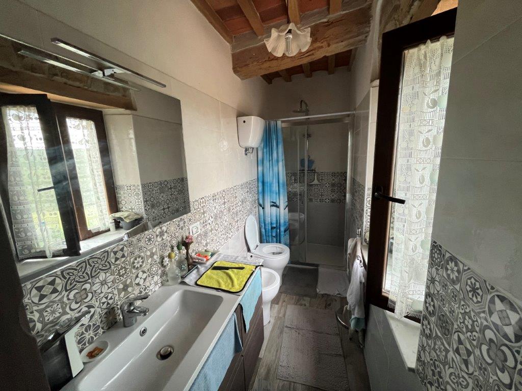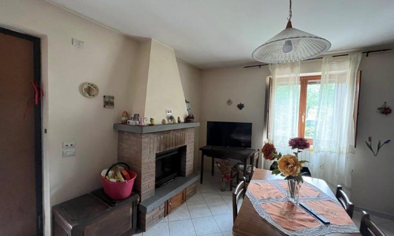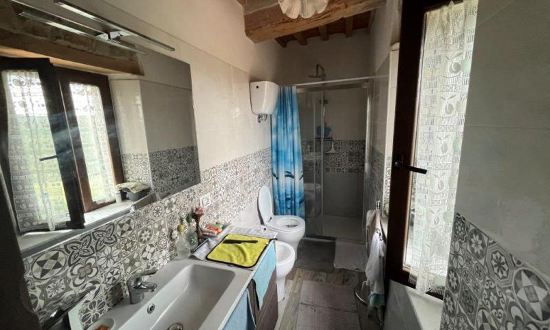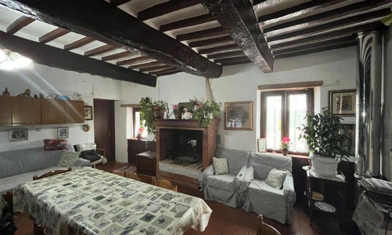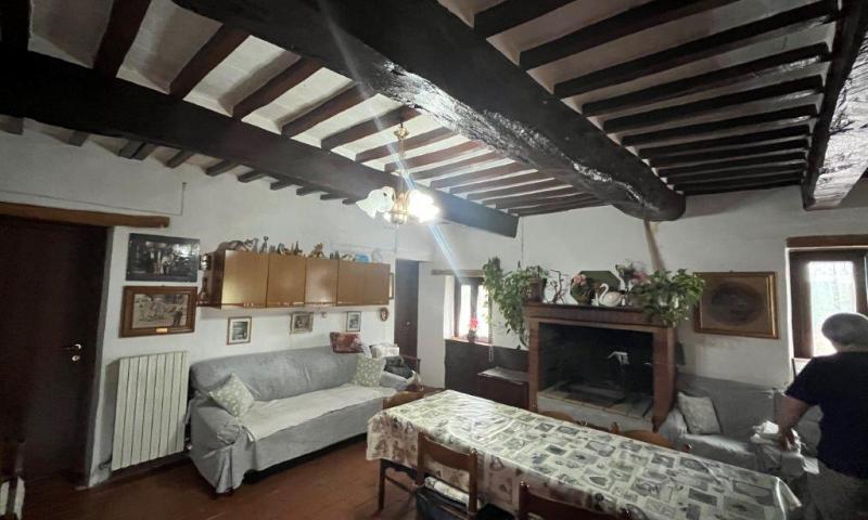 - On the first floor, reached by an external staircase, the living area opens into a living room with fireplace, on this level there are also an eat-in kitchen, a dining room, two double bedrooms and a bathroom.