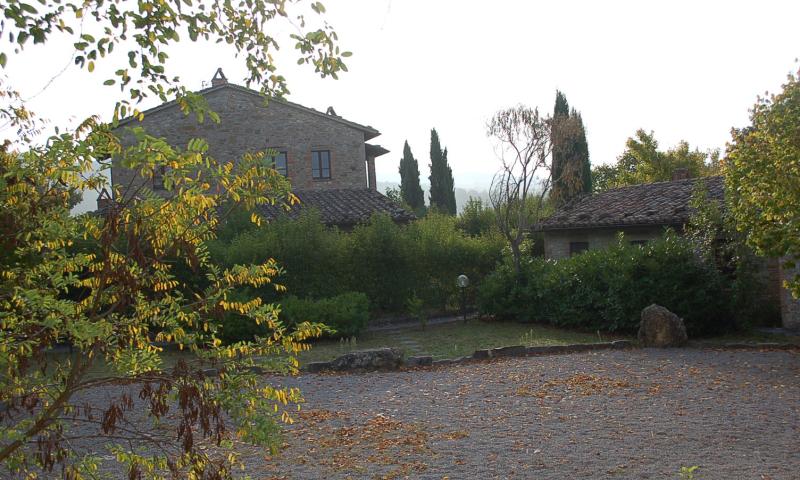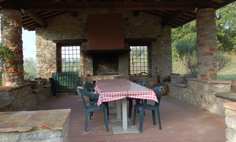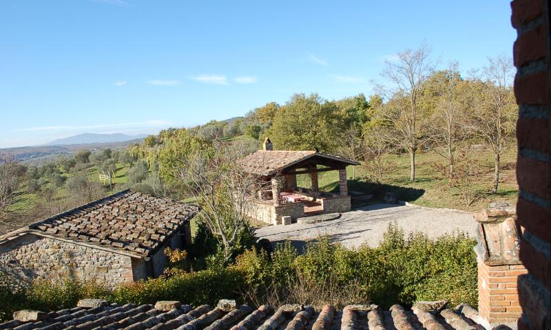 One of the outbuildings is another living unit with kitchen, bedroom and bathroom with separate storage area; whereas the other outbuilding is an open area with a fireplace for eating outside under a roof. There is also a large garden surrounding the house for a total of 3 ha .