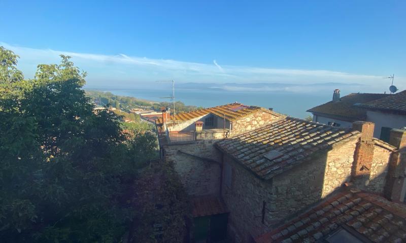 In the main square of the historic center of Castiglione del Lago, in a historic building, apartment with large terrace.