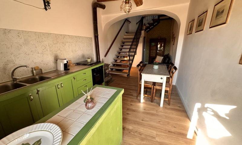 The ground floor consisting of three rooms used as a cellar of approximately 50sq m. An external staircase leads to the first floor composed of a living room with kitchenette, wood stove and bathroom; while from here via an internal staircase we go up to the second floor where we find two bedrooms, closet, bathroom.