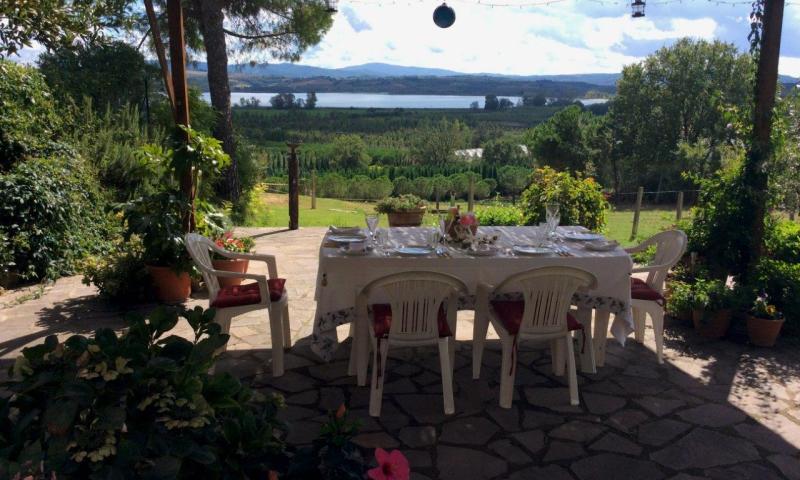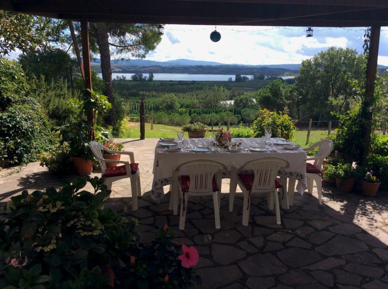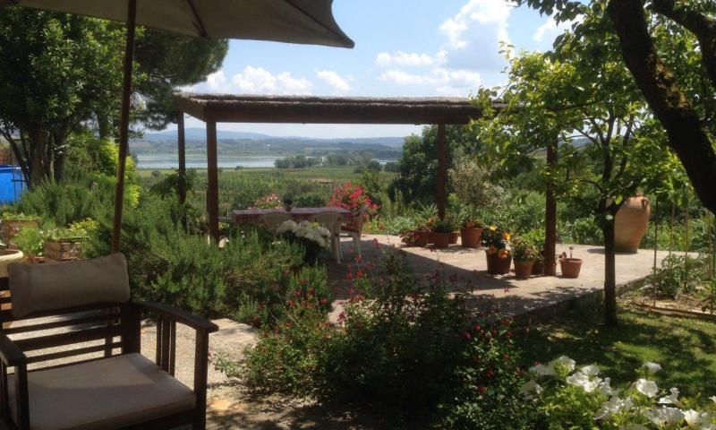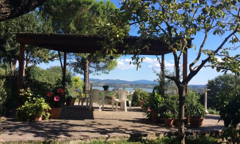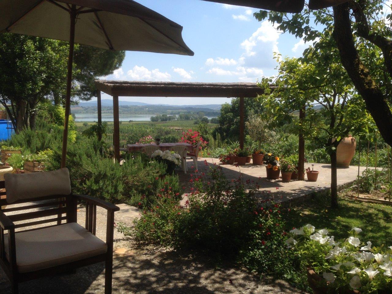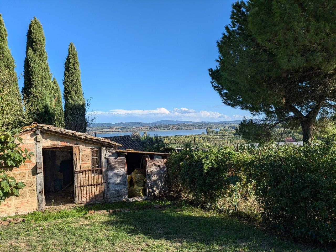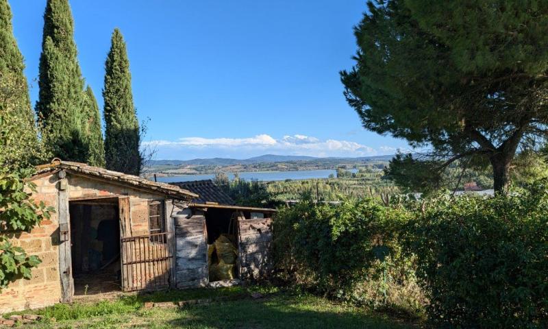 The property includes a private garden of approximately 950 sq m with lovely panoramic terrace overlooking Lake Chiusi and three annex (potentially convertible into additional living space)