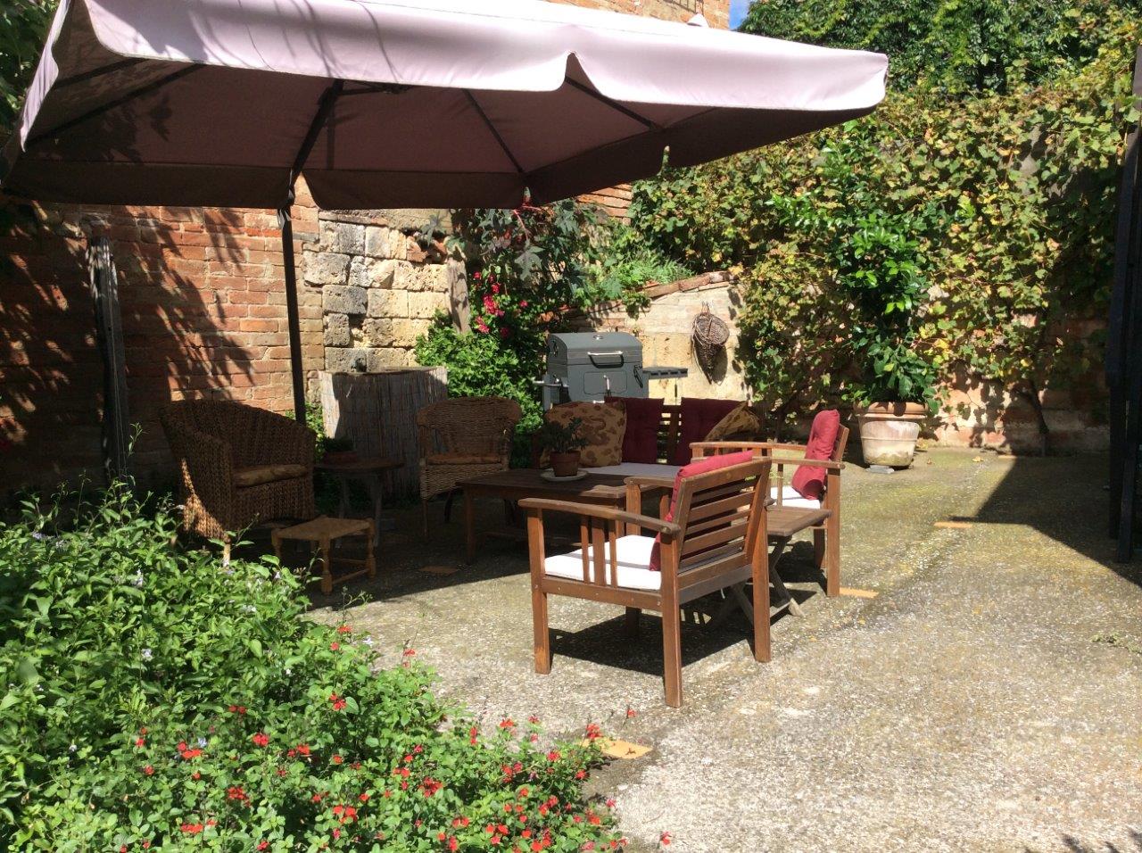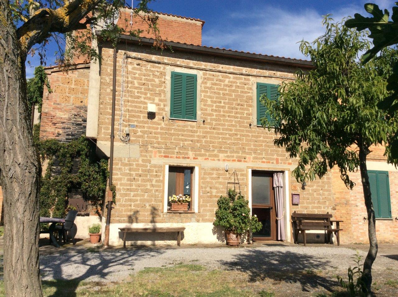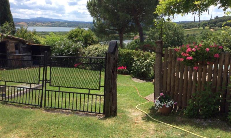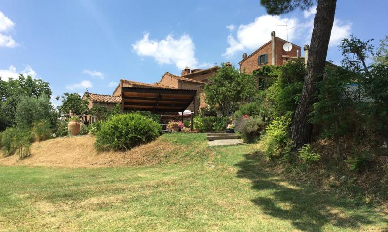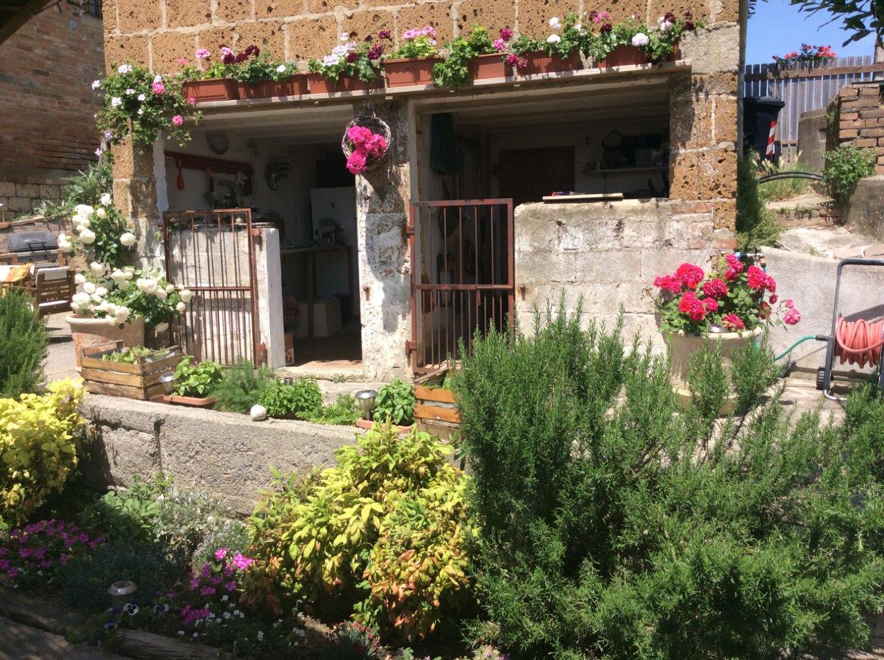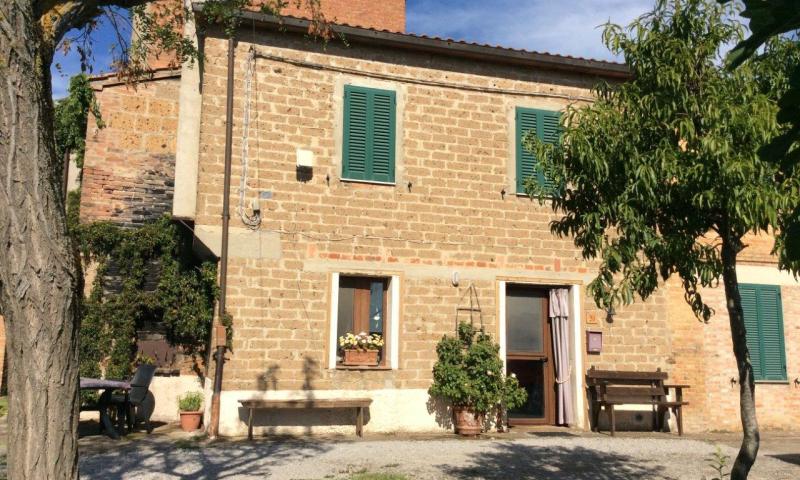 In the locality of Porto, just a few minutes from Lake Chiusi, a charming semi-detached house with a garden and outbuildings.
