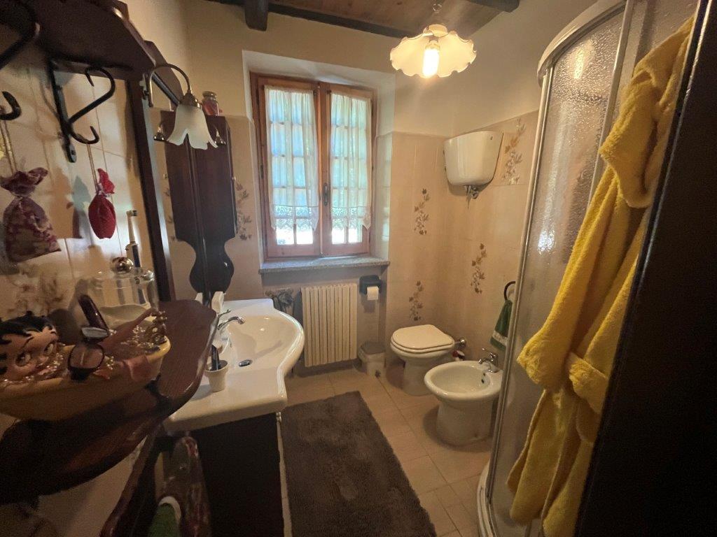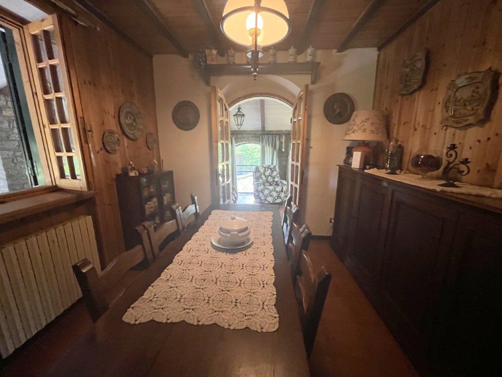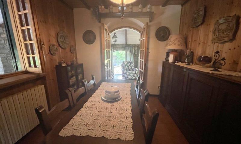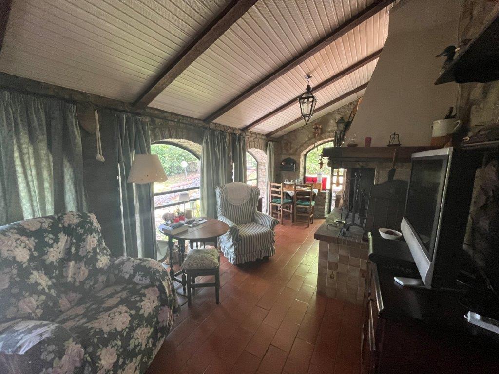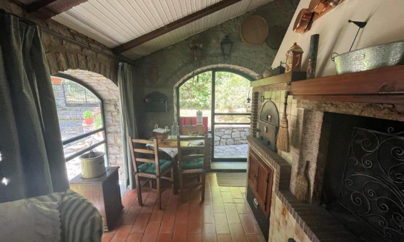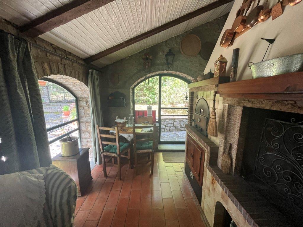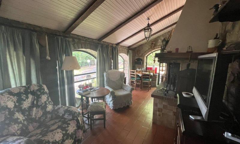 - The house is developed on the ground floor with an entrance hall, living room with fireplace, a corridor leads to the sleeping area with a bedroom and a bathroom with shower, continuing along the corridor we reach a dining room and a kitchenette. Also on the same level, following an extension, we find a spacious and bright living room with fireplace and stove and a large dining room, both rooms have high windows and French doors opening onto the private garden.