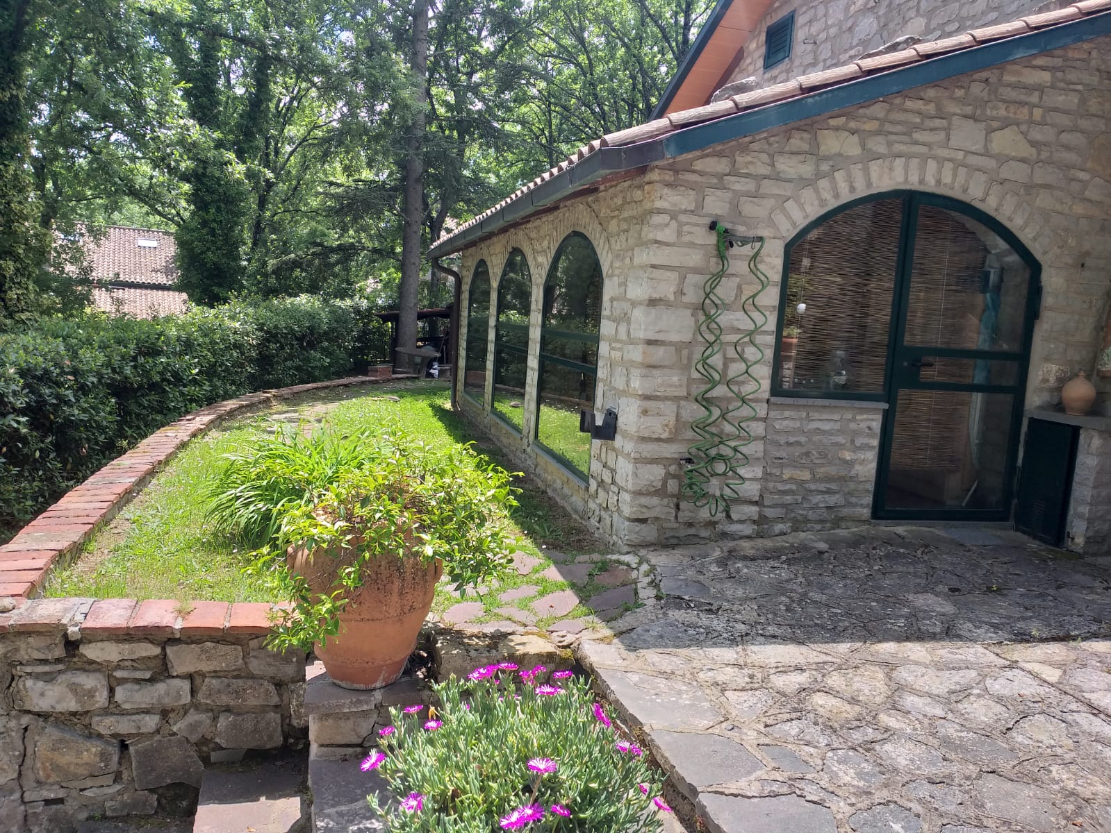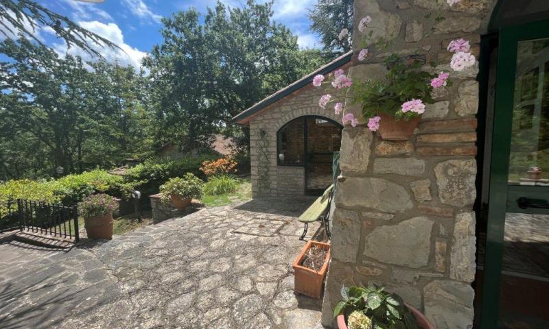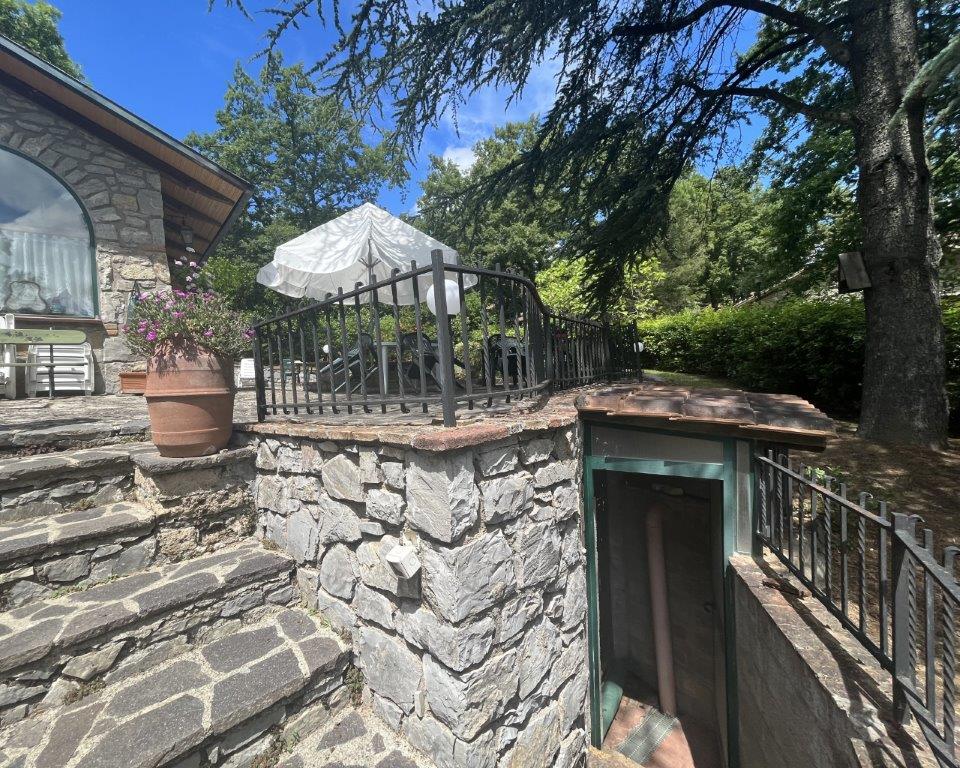 - Going up a spiral staircase we reach the first floor where there are a living room, two bedrooms and a bathroom. The garden surrounding the property is well maintained and features fruit trees, a stone barbecue area, a terraced area, a tool shed and a cellar room located in the basement.