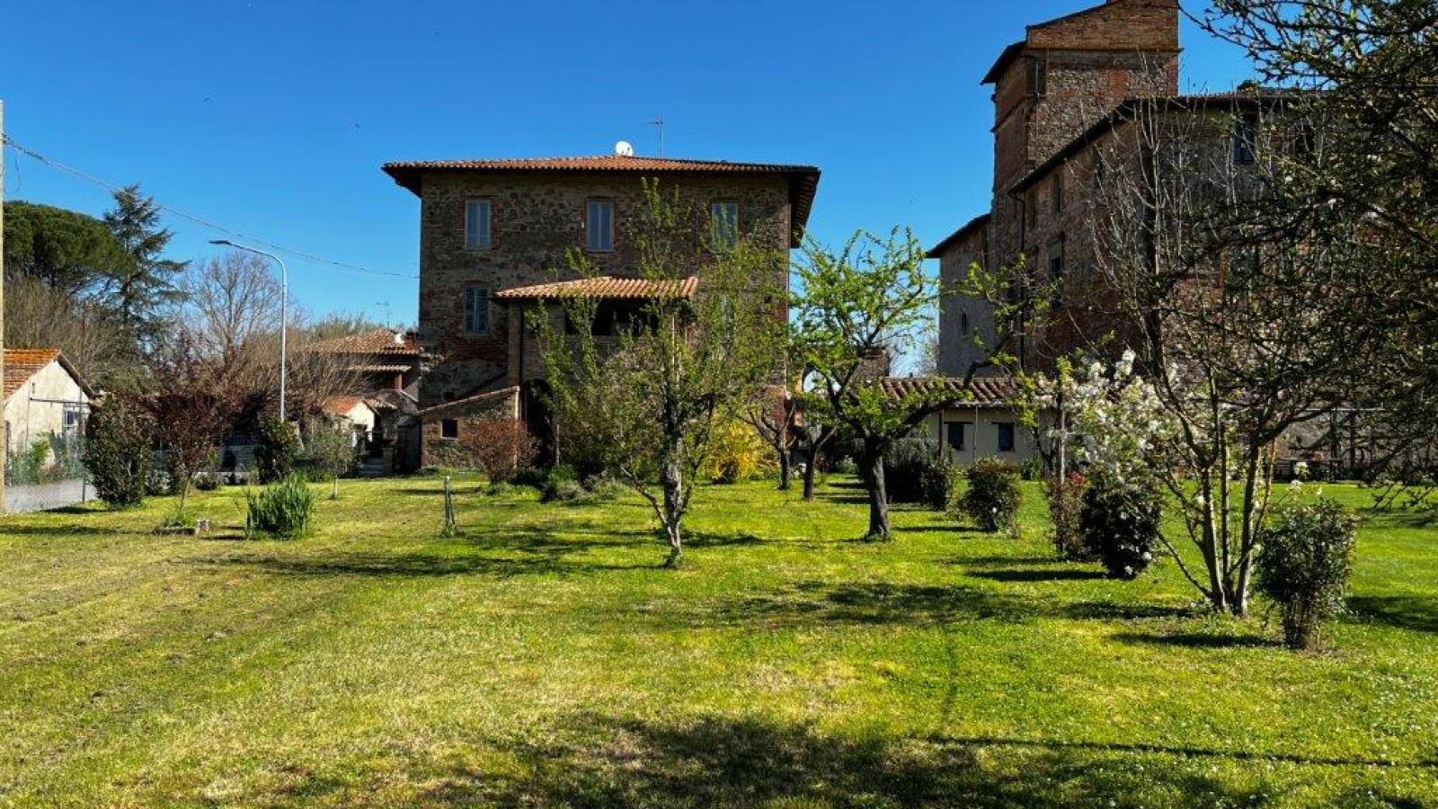 In front of the splendid Abbadia Settefrati, spacious apartment on the first floor with storage rooms, annexes, land and garden.
