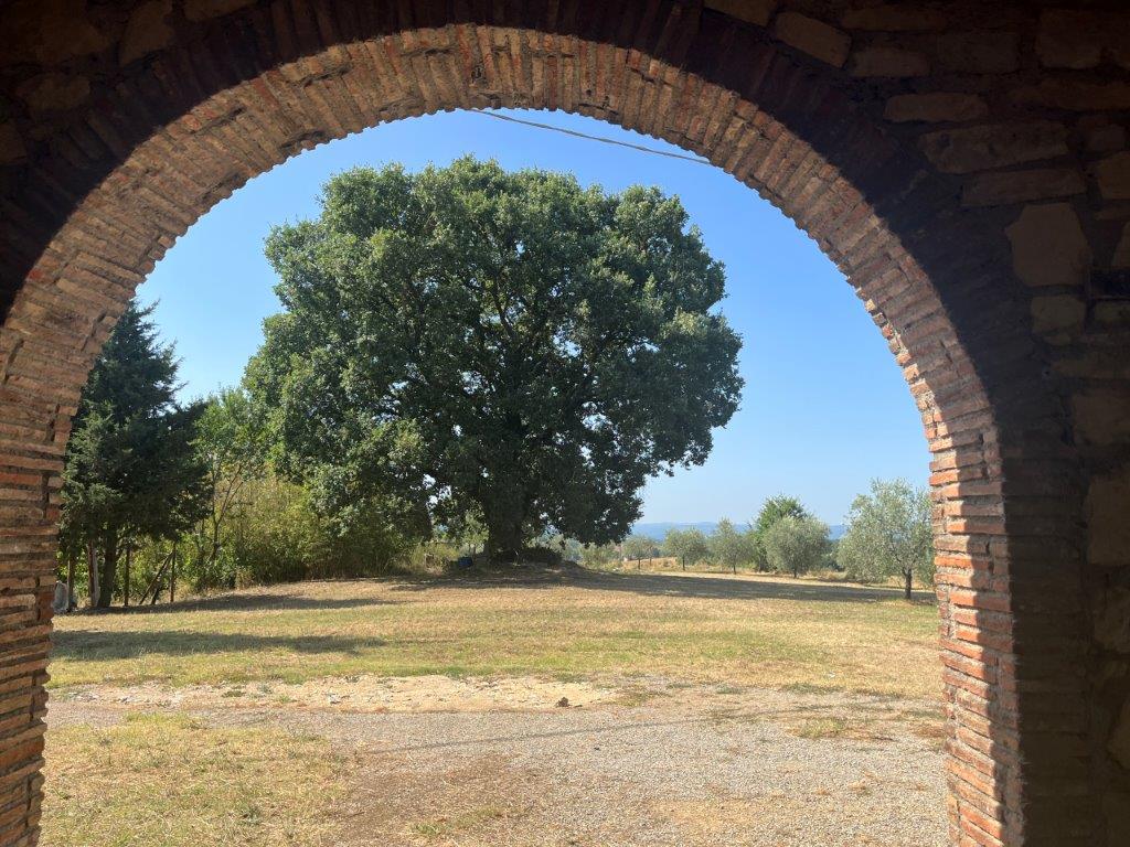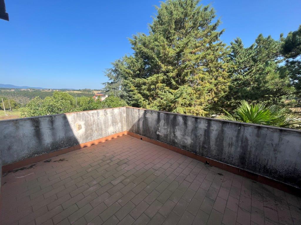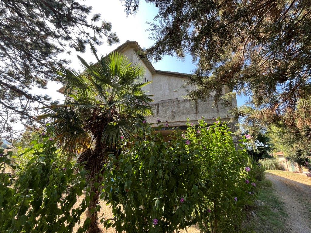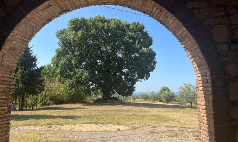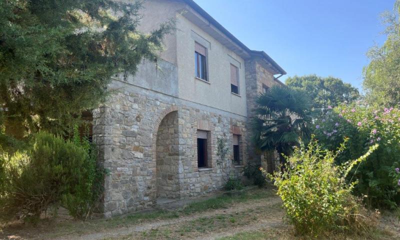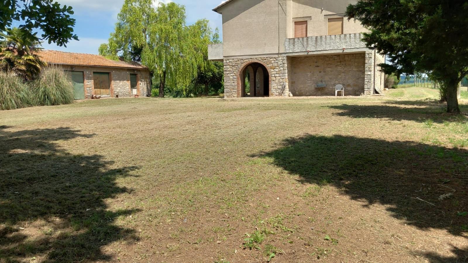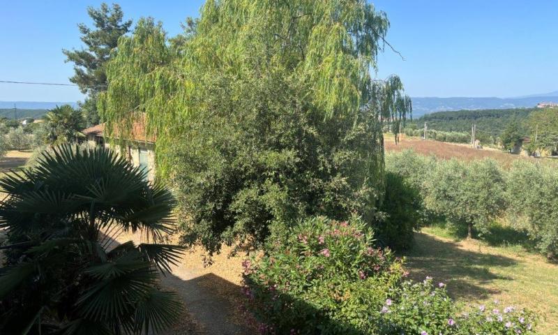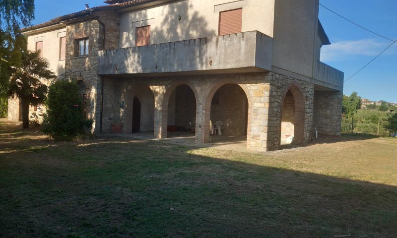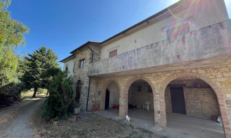 A few steps from Montegabbione, in a particularly panoramic position, detached house with garden, land and outbuildings.