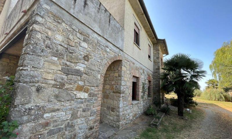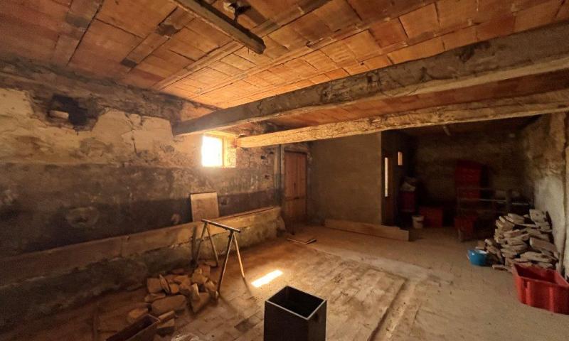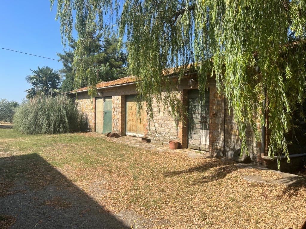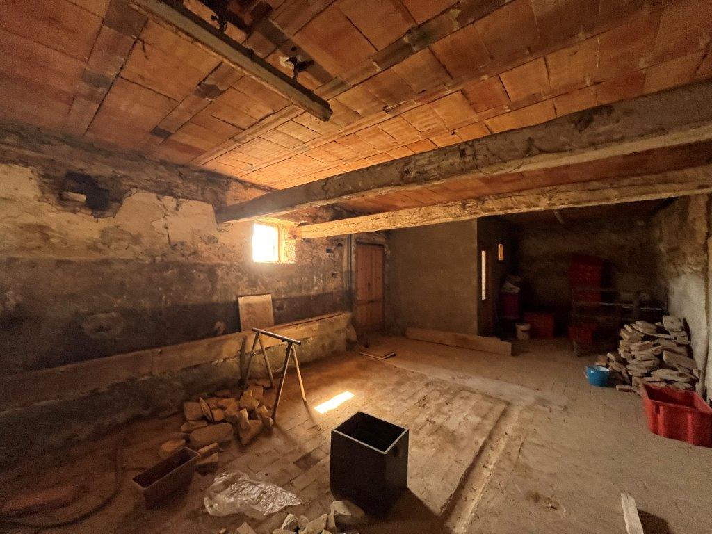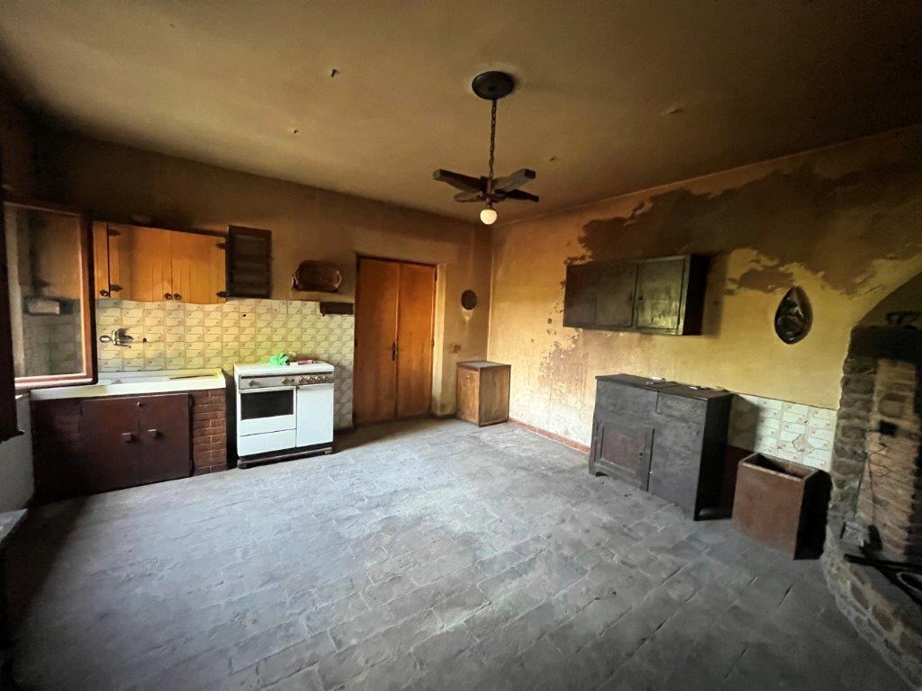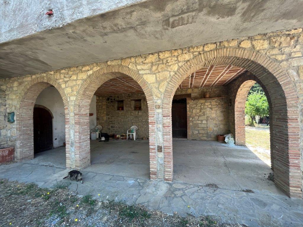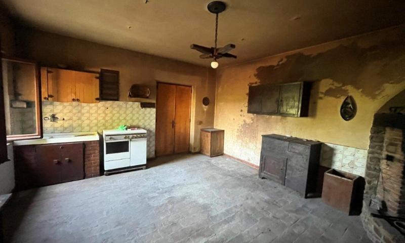 • on the ground floor there are some rooms with wooden beams and a large rustic kitchen; there are three entrances, two of which are located under two wonderful porticoes with brick and stone arches. The plan presents space for the construction of an independent apartment.