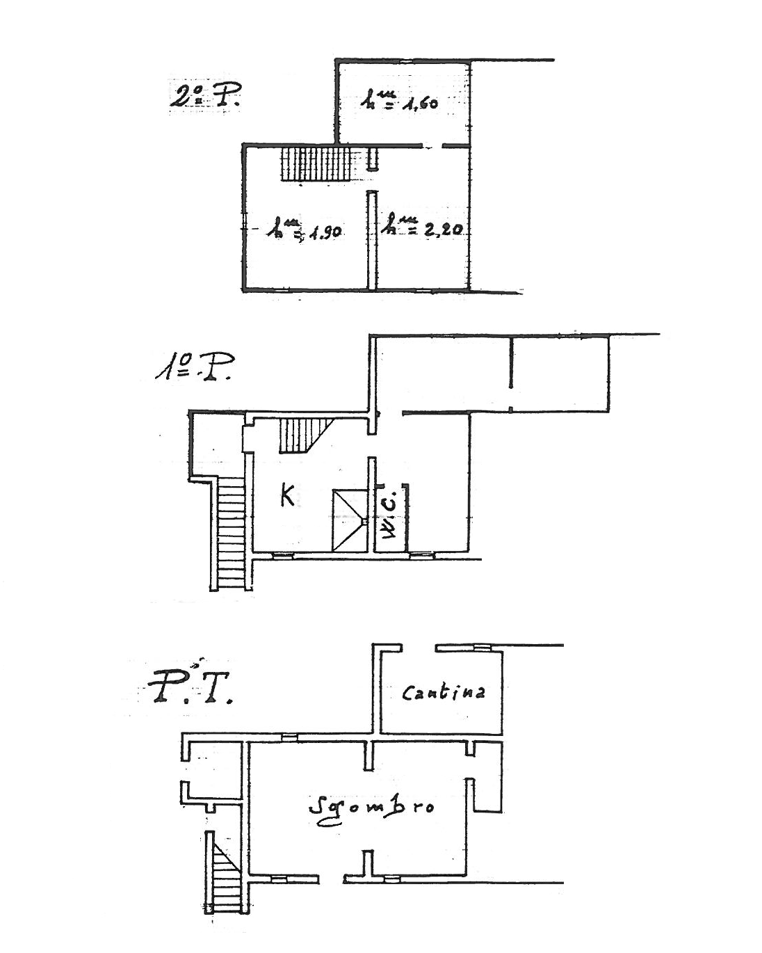 - on the first floor, which is accessed via an external staircase and loggia, there is the kitchen, three bedrooms and a small bathroom.