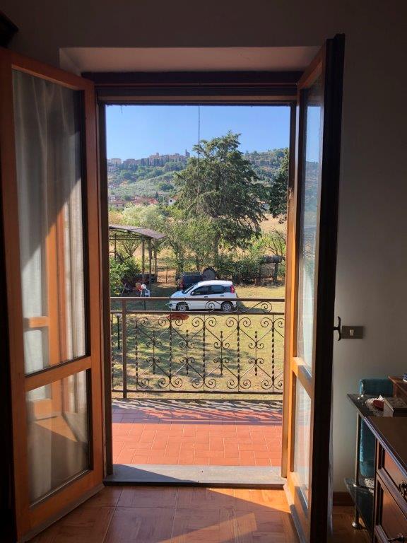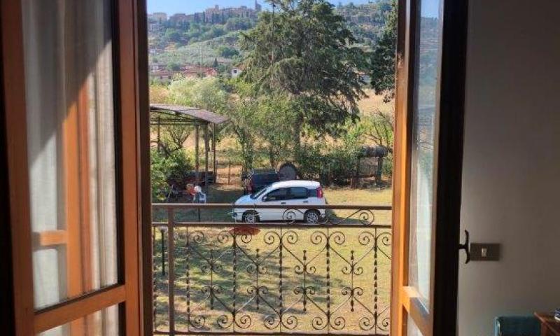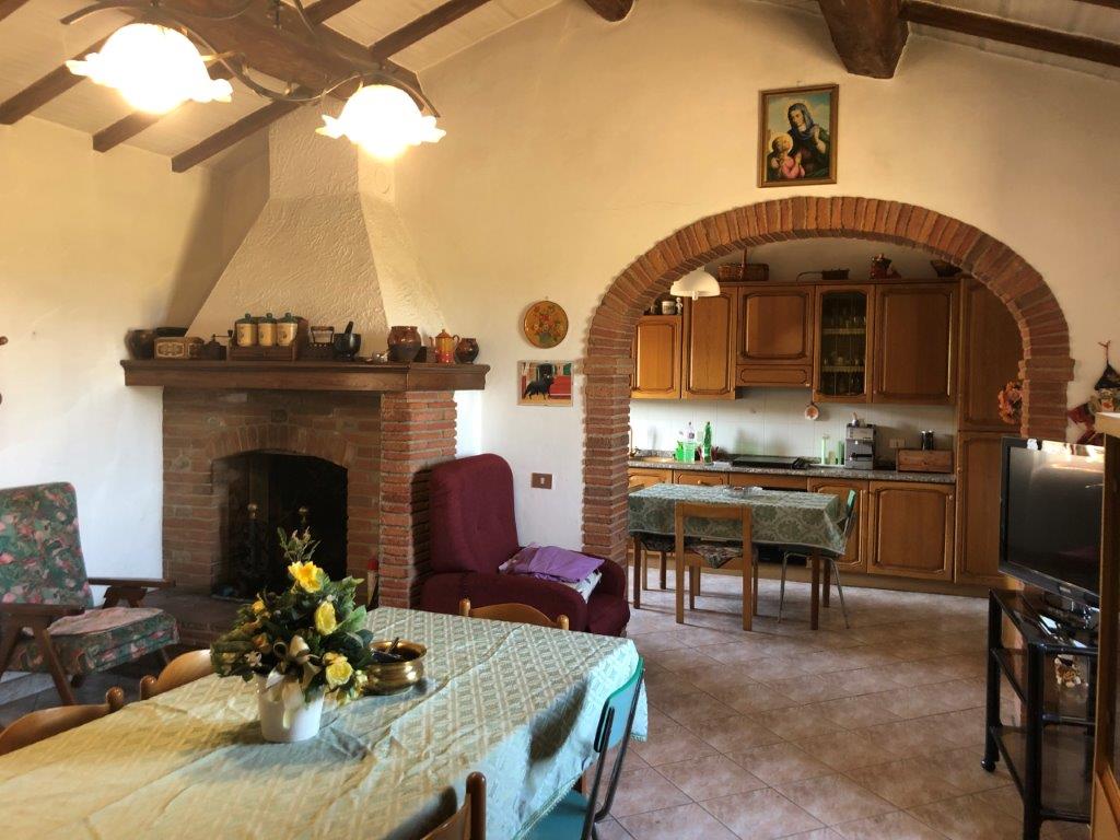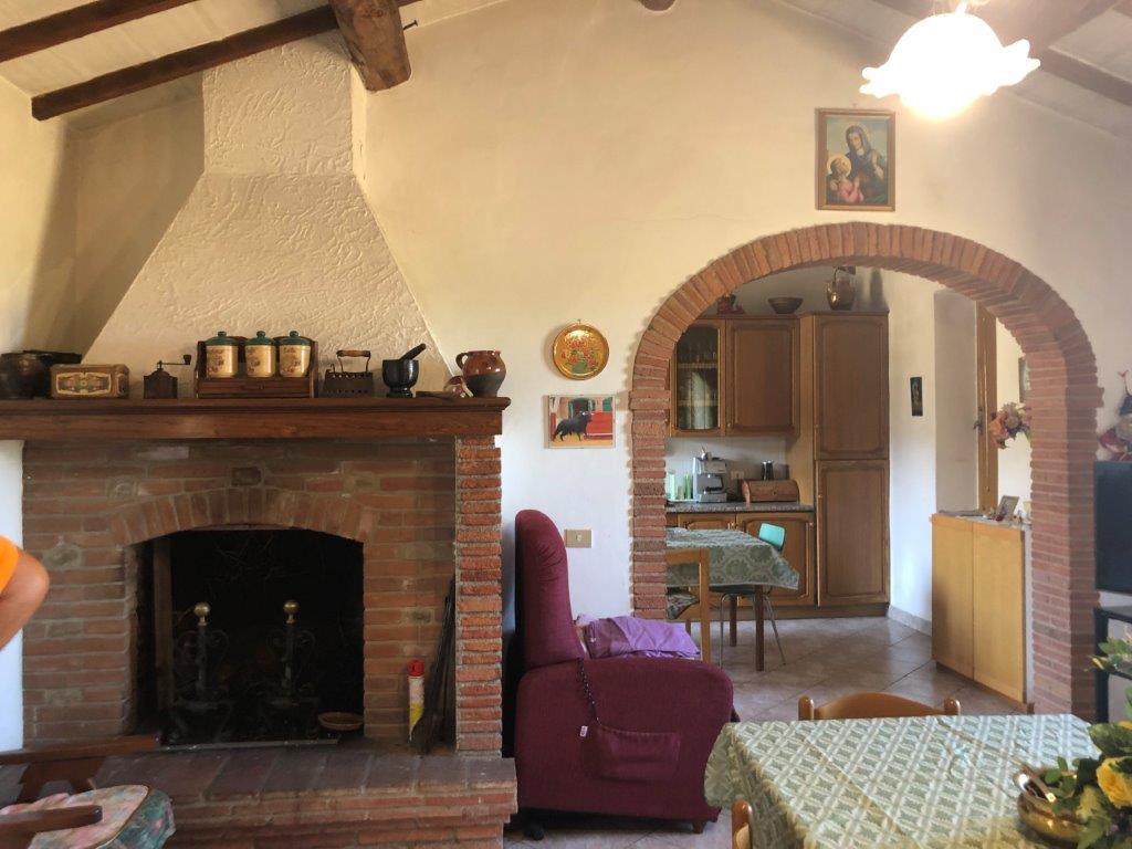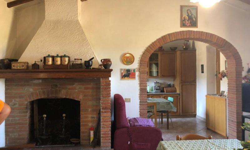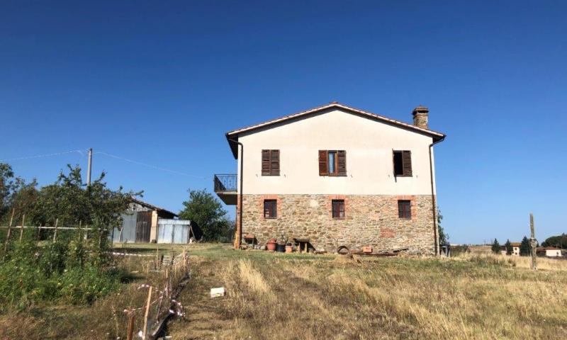 A few km from Panicale, lovely farmhouse on two levels with large surrounding land of about 3 hectares mainly arable land and part of a vineyard with a well.