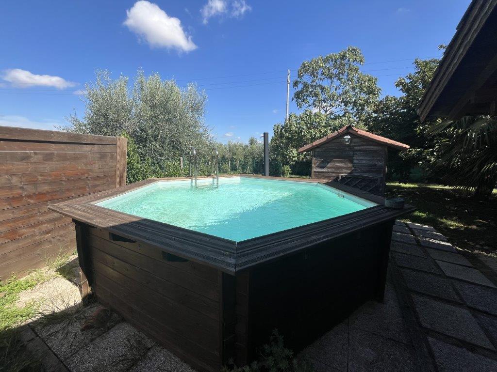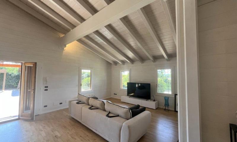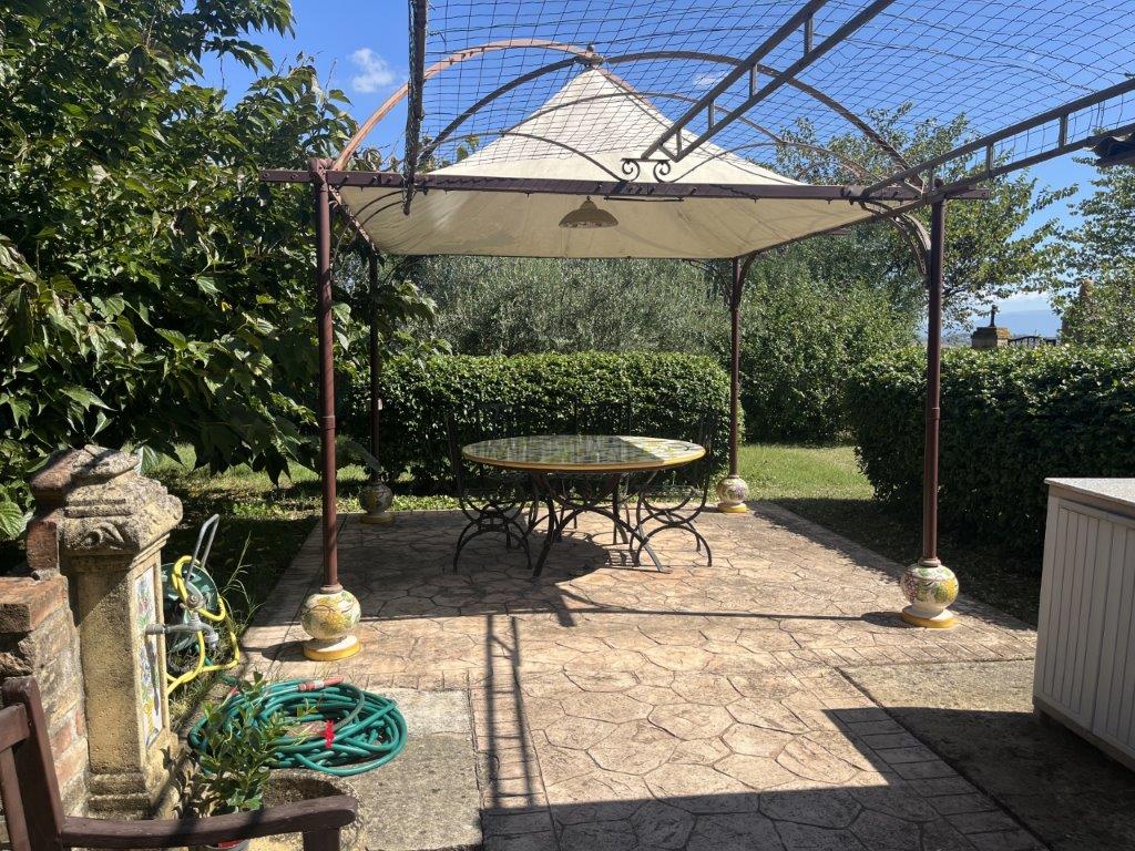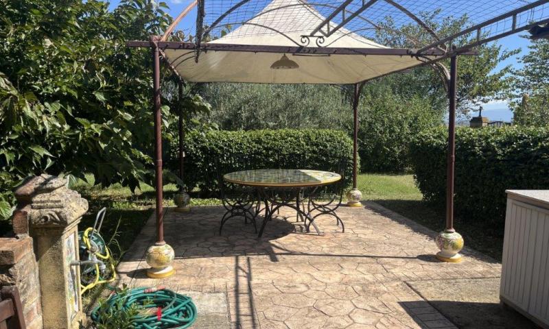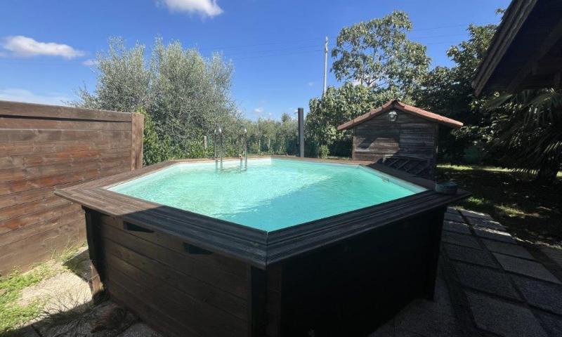 In addition to the 1,500-square-meter garden, completely fenced and planted (with olive trees and other fruit trees), there are several outbuildings including: the main utility room, a large warehouse, and a second covered shed, for a total of 180 square meters. Also included is an outdoor swimming pool completely covered in wood.