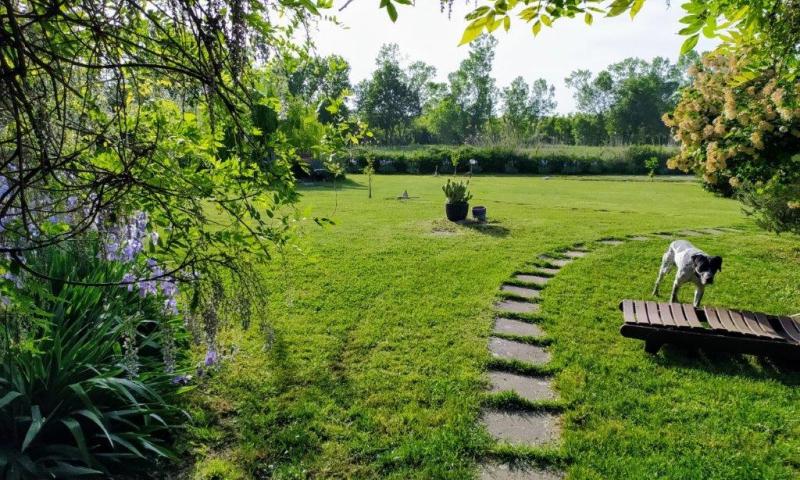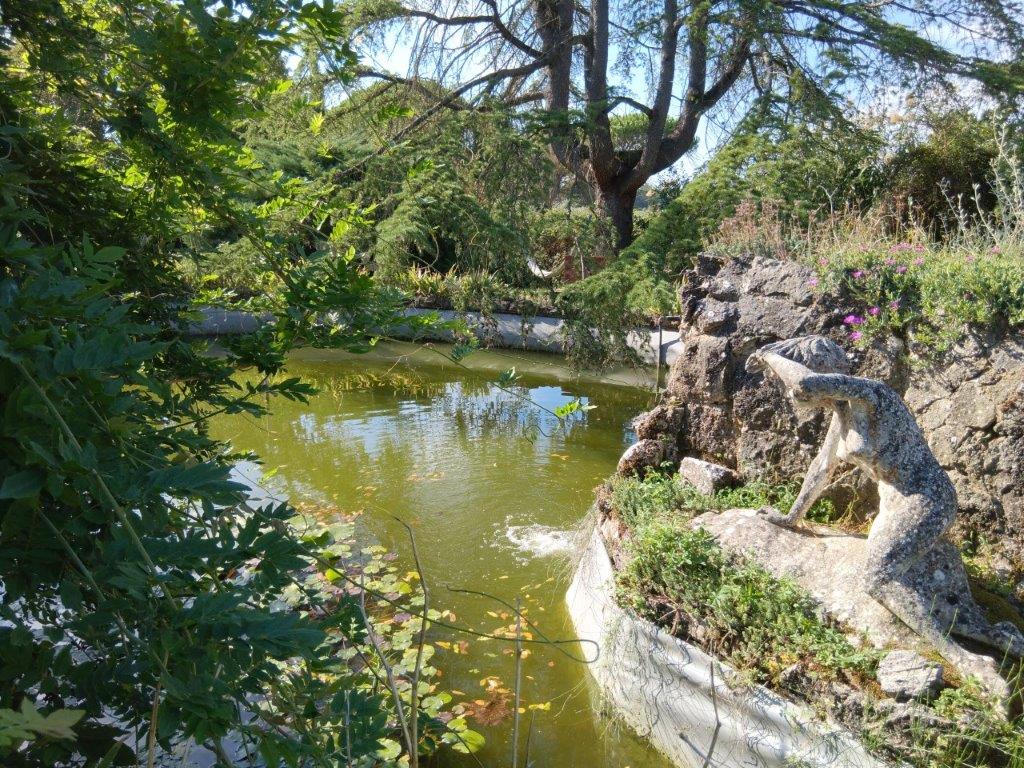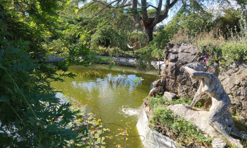 In front of the wisteria-covered pergola, just opposite the living room, lies an enchanting 10 x 6 m artificial lake—130 cm deep—adorned with water lilies and home to goldfish. This picturesque feature could easily be transformed into a swimming pool. Additional amenities include tool sheds, a greenhouse, and a small tennis and basketball court.