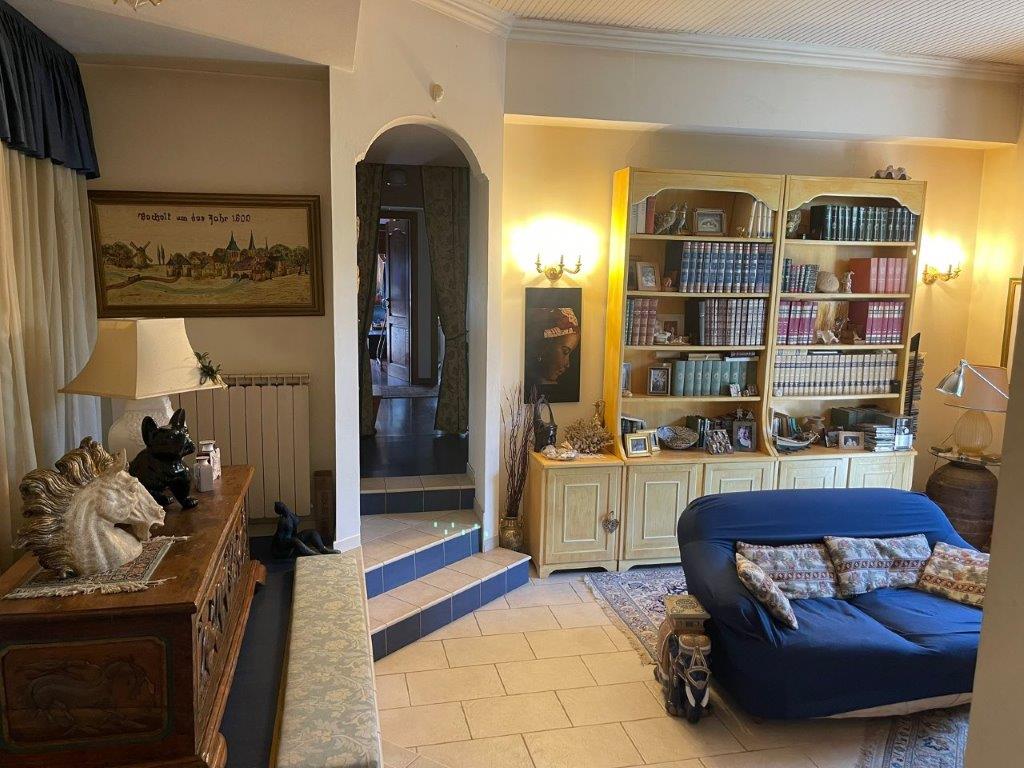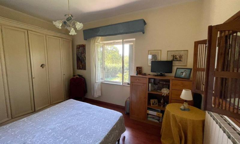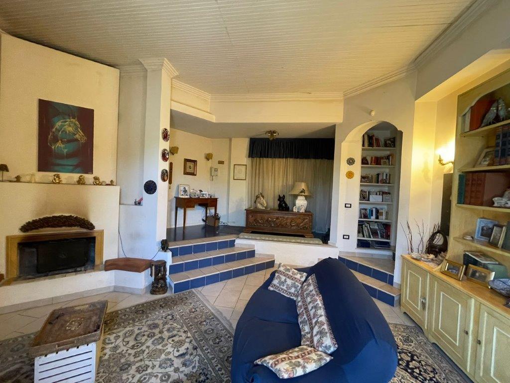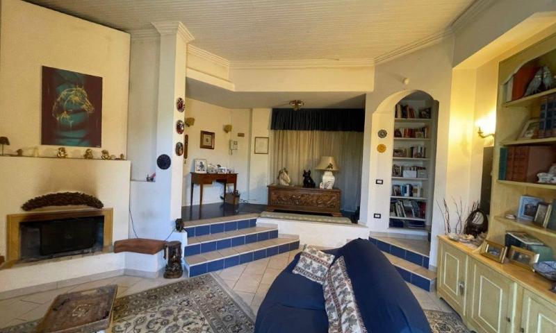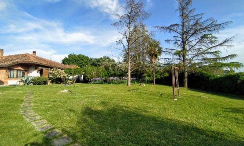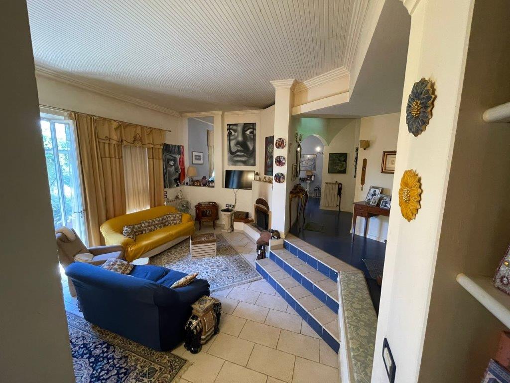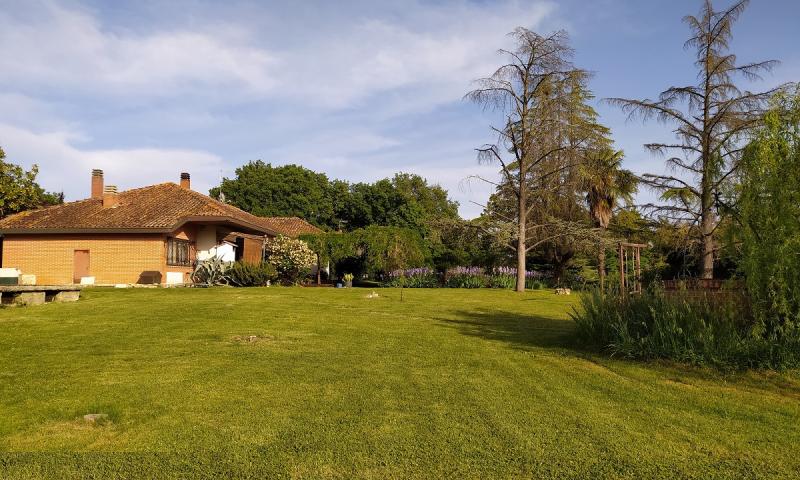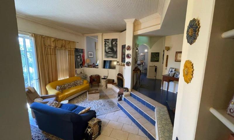 The surrounding grounds extend over approximately 1 hectare of completely flat land, adorned with majestic cedar and weeping willow trees. Around 5,000 sqm of manicured lawn encircle the house within the fenced area, while beyond the enclosure lies an olive grove with about 40 productive trees and a paddock with a stable, currently home to a horse.