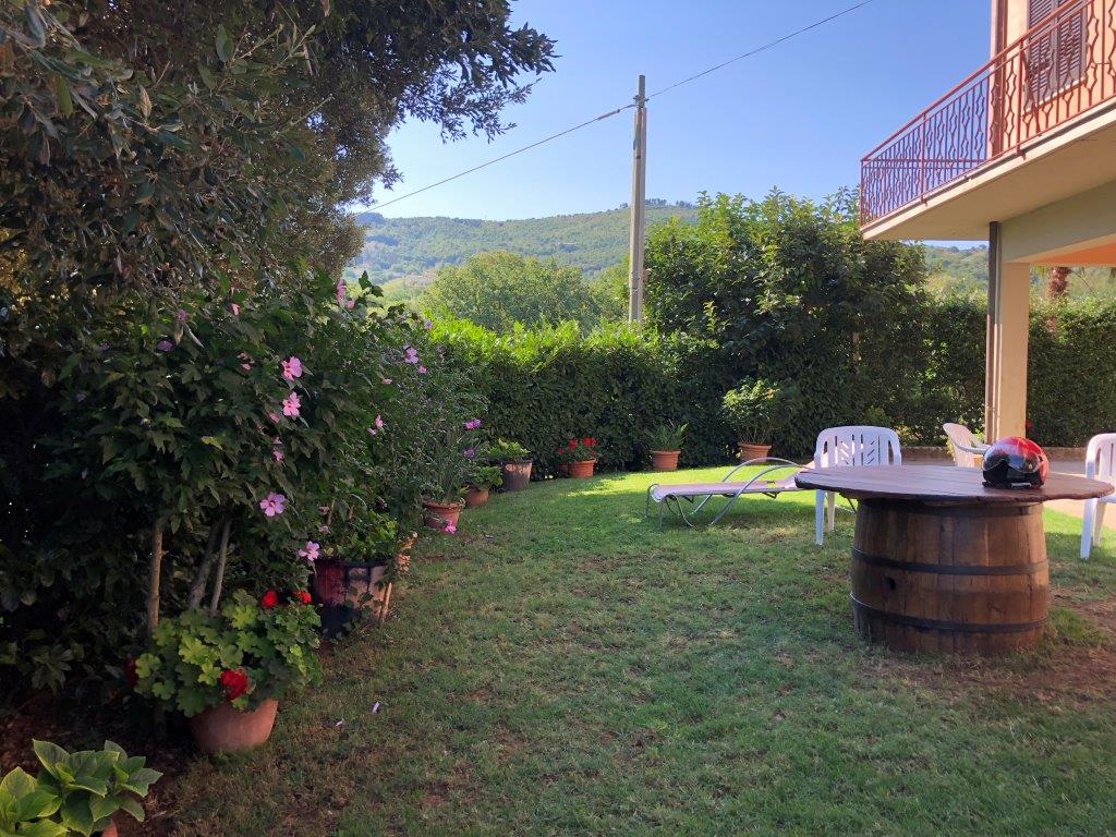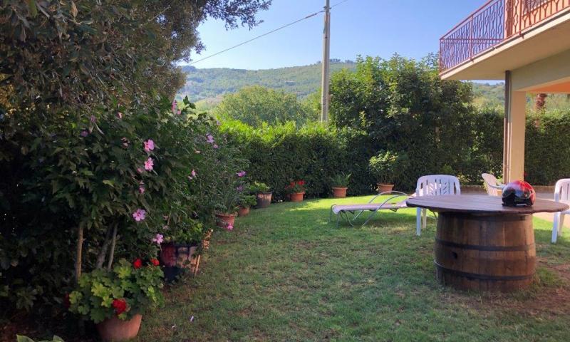 The property is surrounded by 5000 square meters of land, partly used as a garden with a well and partly used as an olive grove with 120 plants in full production.