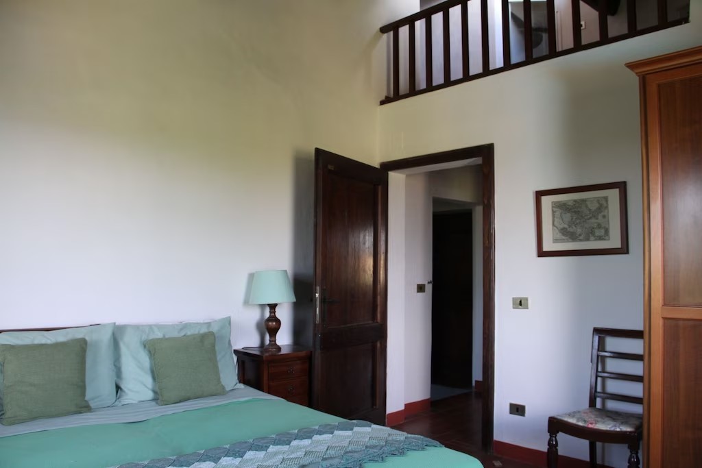 • on the ground floor there is an independent apartment consisting of an open space lounge, dining room and kitchen with French windows, which open onto the garden, bathroom and bedroom. On the same floor there is a large cellar.