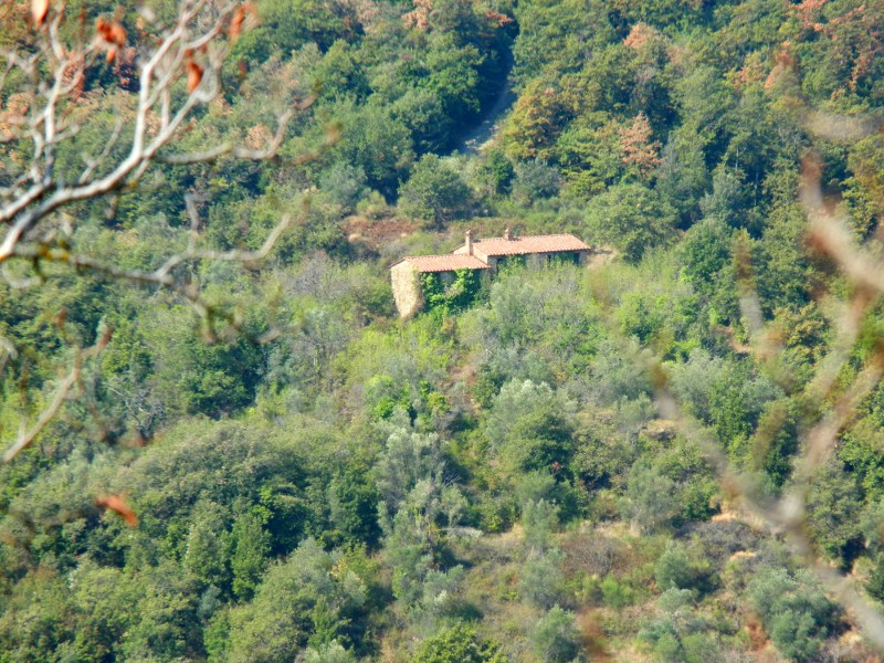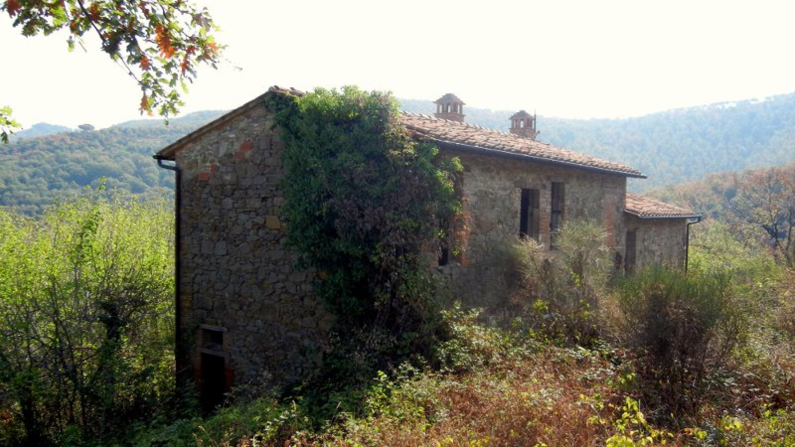 The roof was redone some years ago and the walls consolidated. The property also includes approx 7 ha of land, partially olive grove and partially woodland.