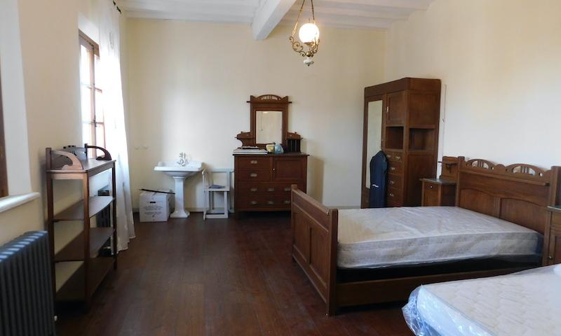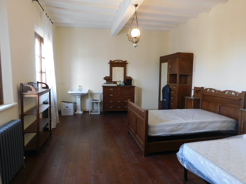 - On the ground floor we find a large entrance hall, a grand living area with arches and fireplace, an old cellar under this room in brick, a study, a dining room with access to the garden with century-old trees creating shady areas, a kitchen, a bathroom, a technical and laundry room and other store rooms belonging to the part of the house still to be restored;