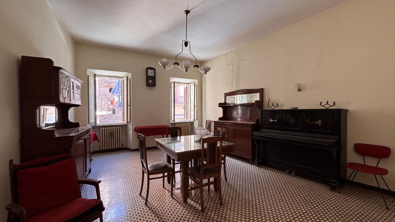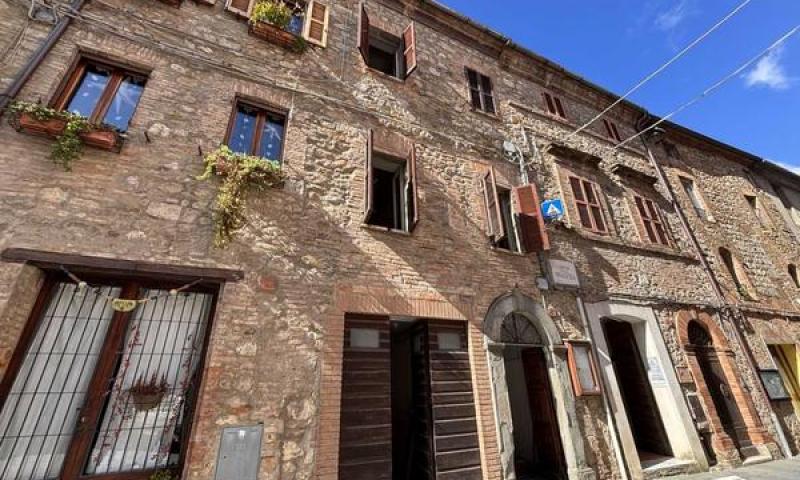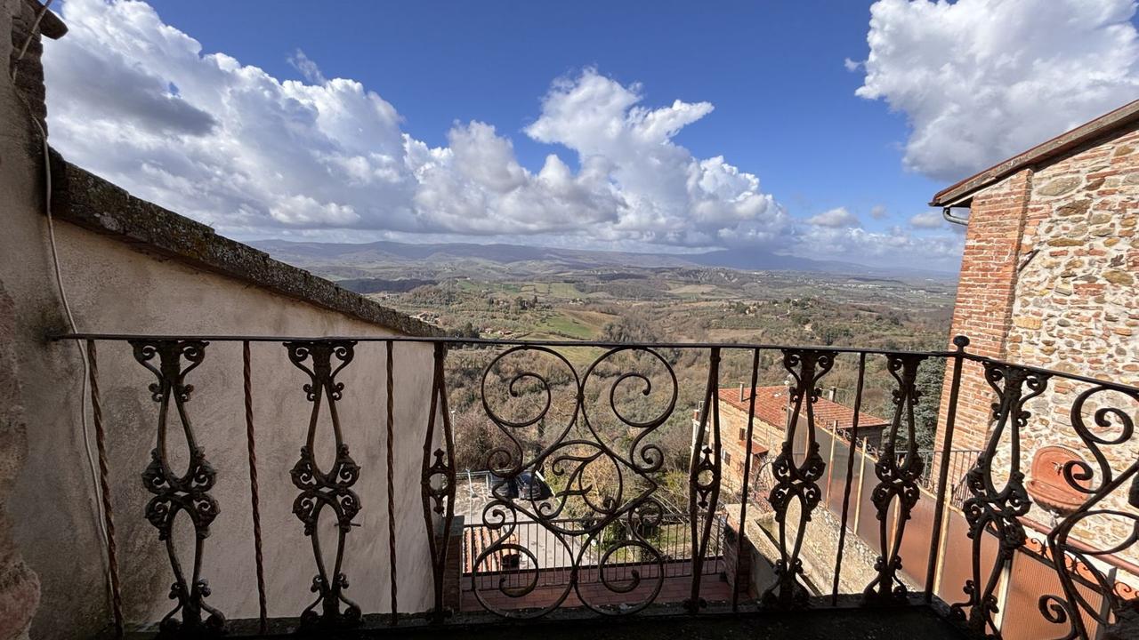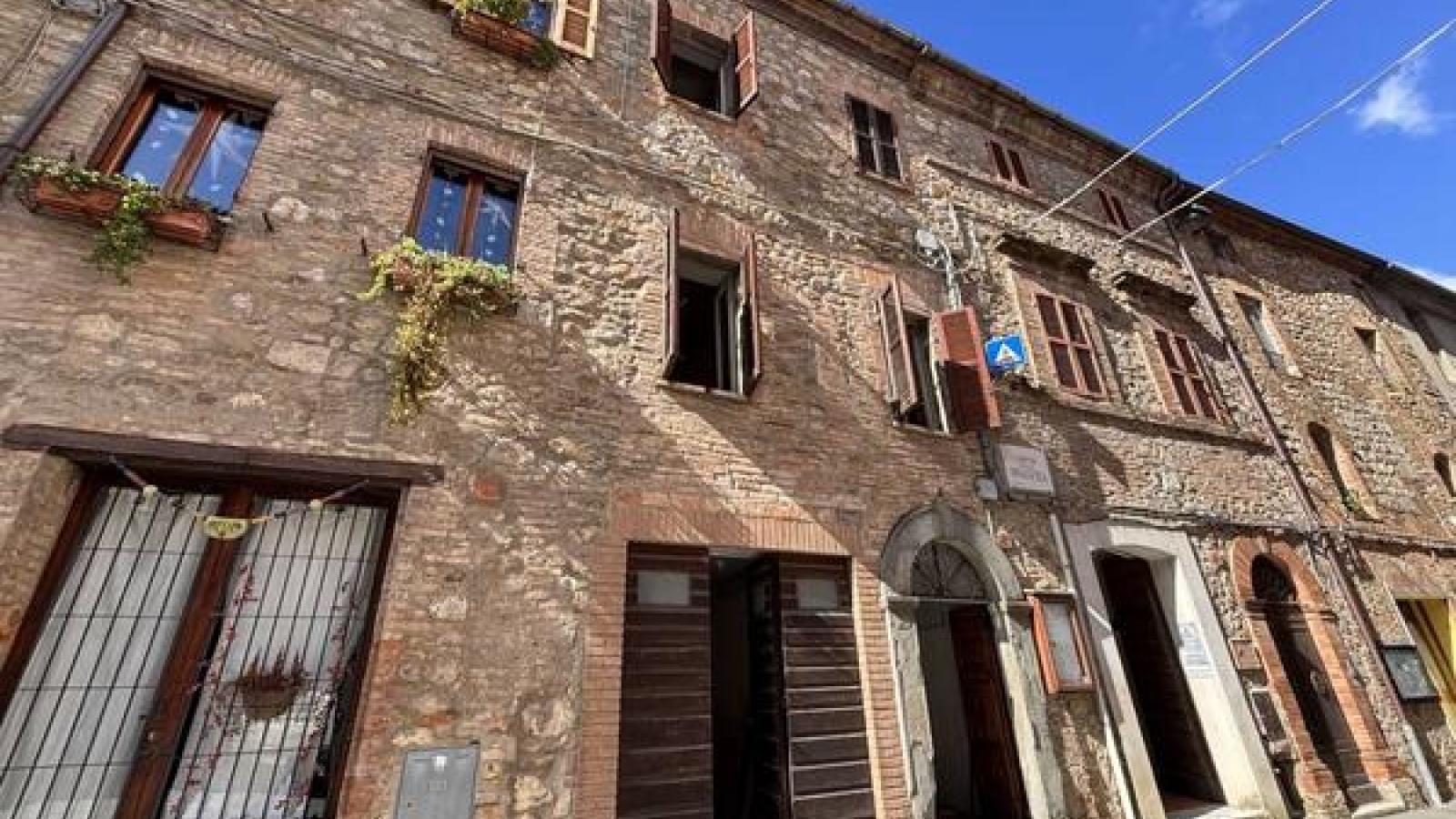 Sulla piazza del paesino medievale, con doppio affaccio sul centro storico e la vallata con i suoi tramonti, caratteristico cielo-terra con terrazza e balconi panoramici. ll fabbricato, dal sapore e dalle finiture di pregio autentiche, si sviluppa su quattro piani fuori terra e si suddivide in: