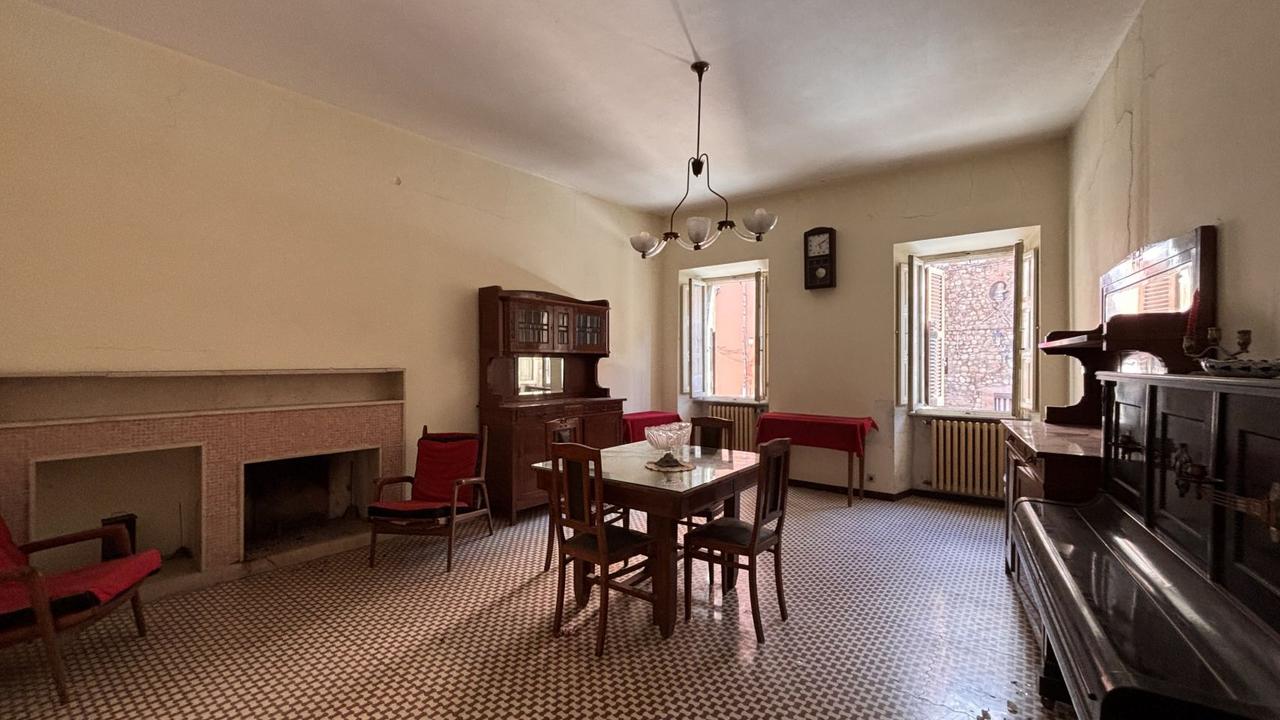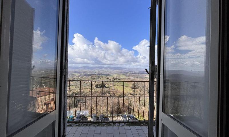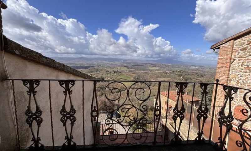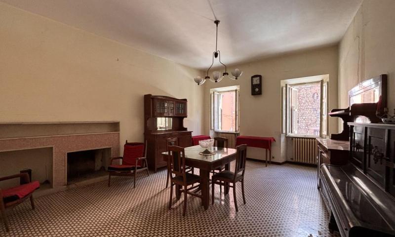 Piano primo: cucina, salotto con accesso alla terrazza panoramica, ampio soggiorno con camino con affaccio sulla piazza, due camere con terrazzo con vista esclusiva sul Monte Cetona, ripostiglio e bagno;