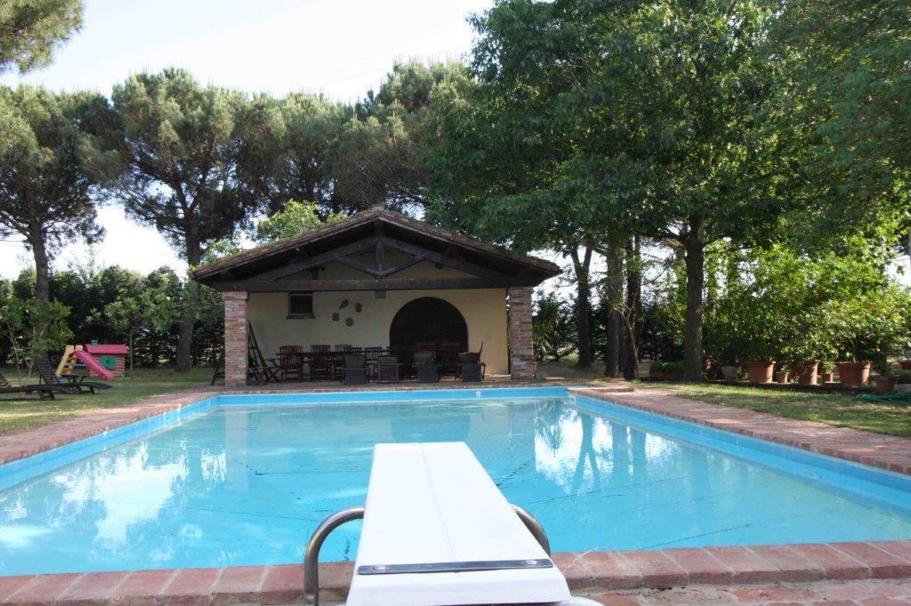 A completare la proprietà una piscina 7x13 con rispettivo fabbricato composto da locale tecnico, ripostiglio e piccola sala con angolo cottura, fuori una terrazza coperta proprio di fronte alla piscina.
