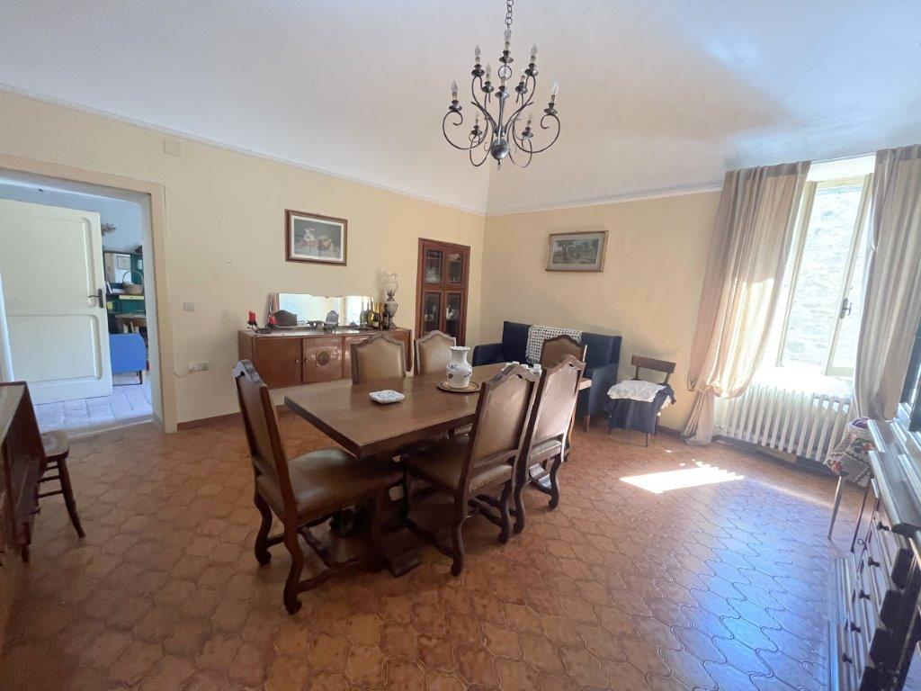 - Appartamento al piano secondo da ristrutturare con fondi al piano terra e orto. L’ingresso, vano scala e stanza di passaggio sono in comune con l’appartamento al piano primo. L’appartamento è così composto: salone con camino, cucina, due camere da letto e bagno. Si può accedere a un terrazzino sul tetto molto panoramico. A piano terra un lungo vano conduce all’ingresso del giardino.
