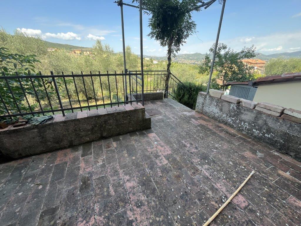 - Delizioso appartamento al piano primo con ampi fondi e giardino a piano terra. L’appartamento è così composto: camera matrimoniale, cucina con balcone, salone con meraviglioso soffitto a volta, bagno con balcone, disimpegno, cameretta e seconda camera matrimoniale. A piano terra troviamo un ampio vano magazzino e un piccolo vano tecnico con caratteristico arco e soffitto con travi a vista che si potrebbero convertire in ulteriore spazio abitativo. Da qui si accede a un terrazzino panoramico, da cui si scende nel giardino.