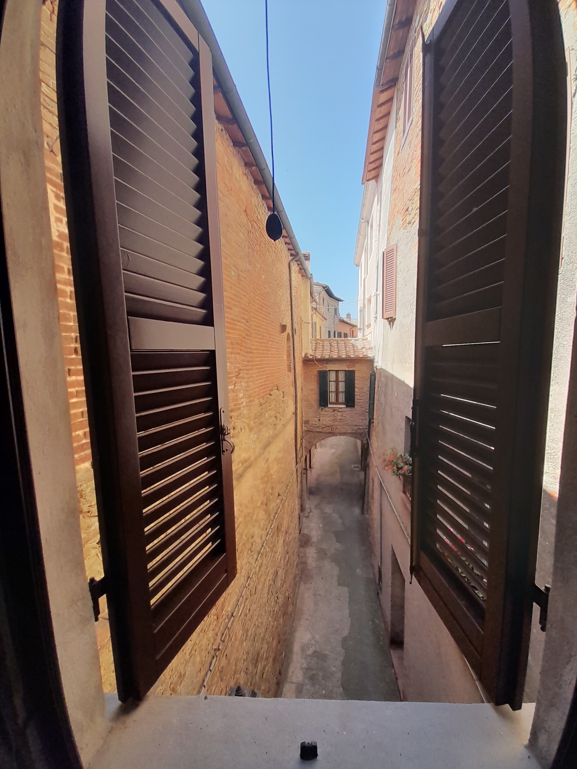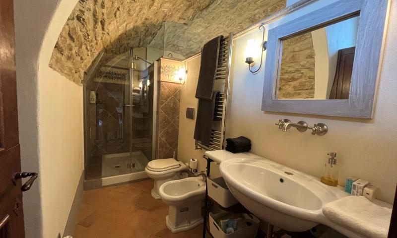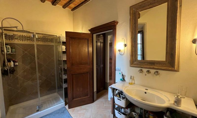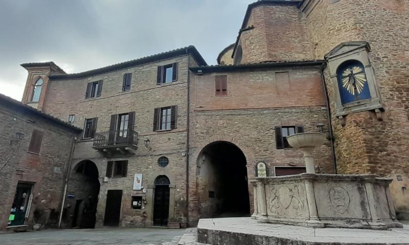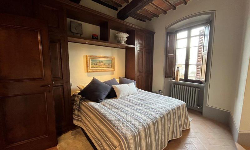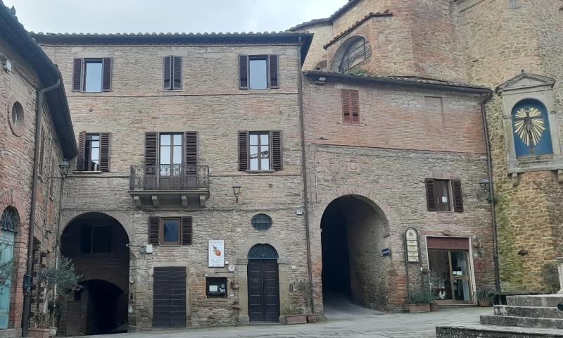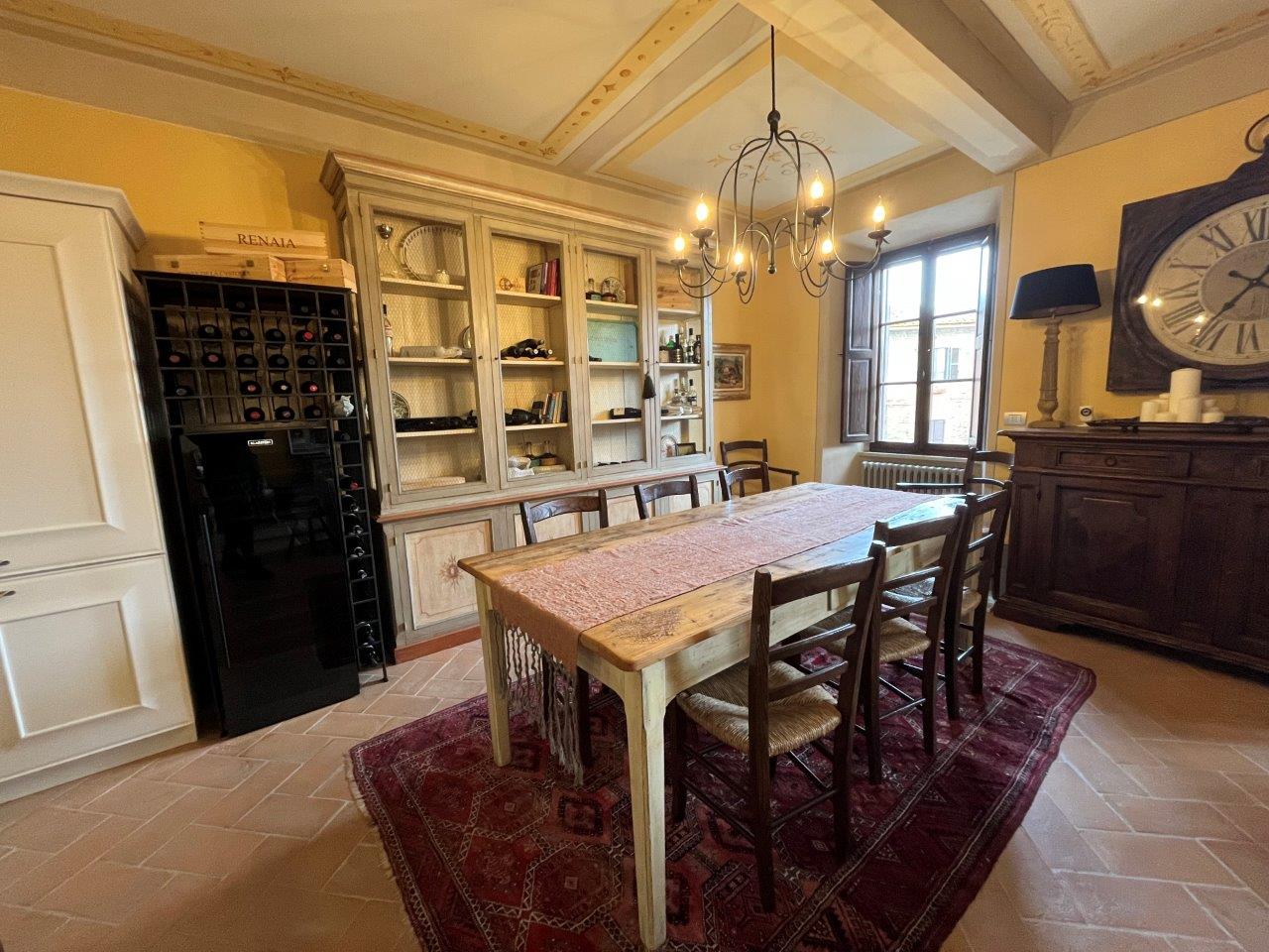 Nel cuore del borgo medievale di Panicale, questo appartamento completamente rinnovato si trova al primo piano di un antico palazzo posto sulle mura del centro storico con doppio affaccio, sia sulla piazza principale sia sulla vallata.