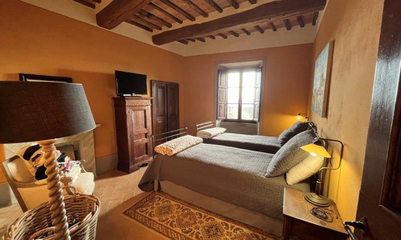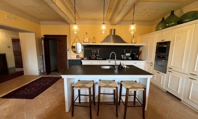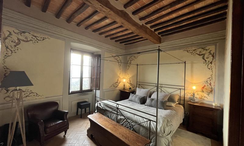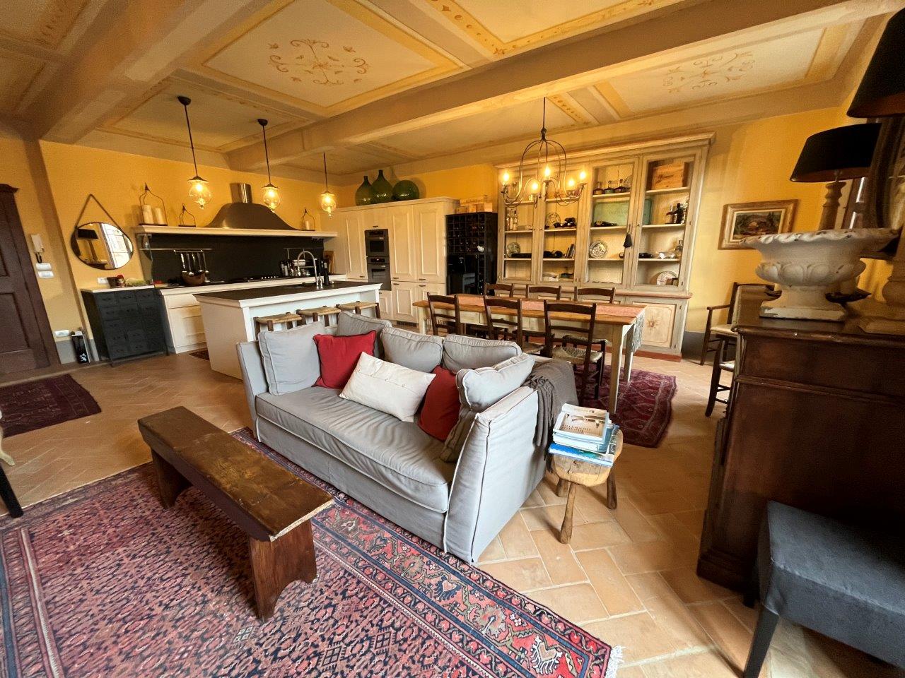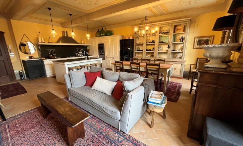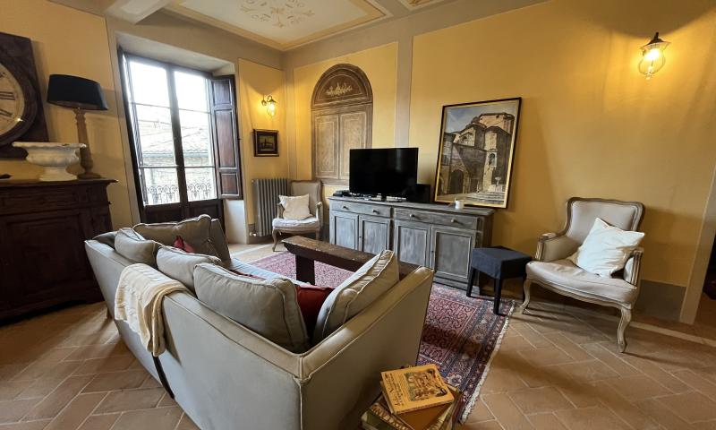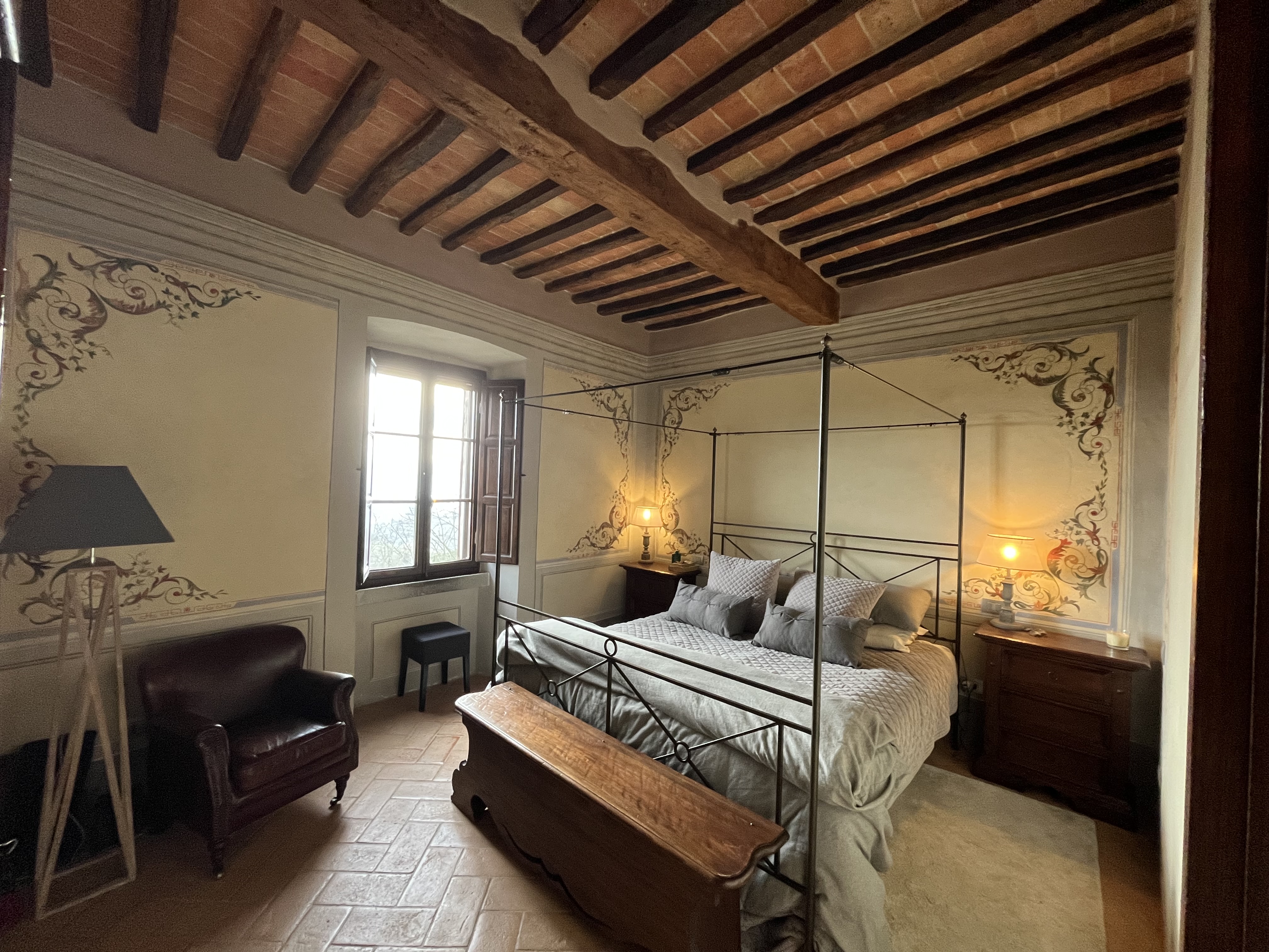 Il pavimento è in cotto fatto a mano, le travi sono quelle originali che si trovavano nella casa, le pareti finemente affrescate e le numerose finestre che rendono questo delizioso nido un'accogliente trappola per il sole.